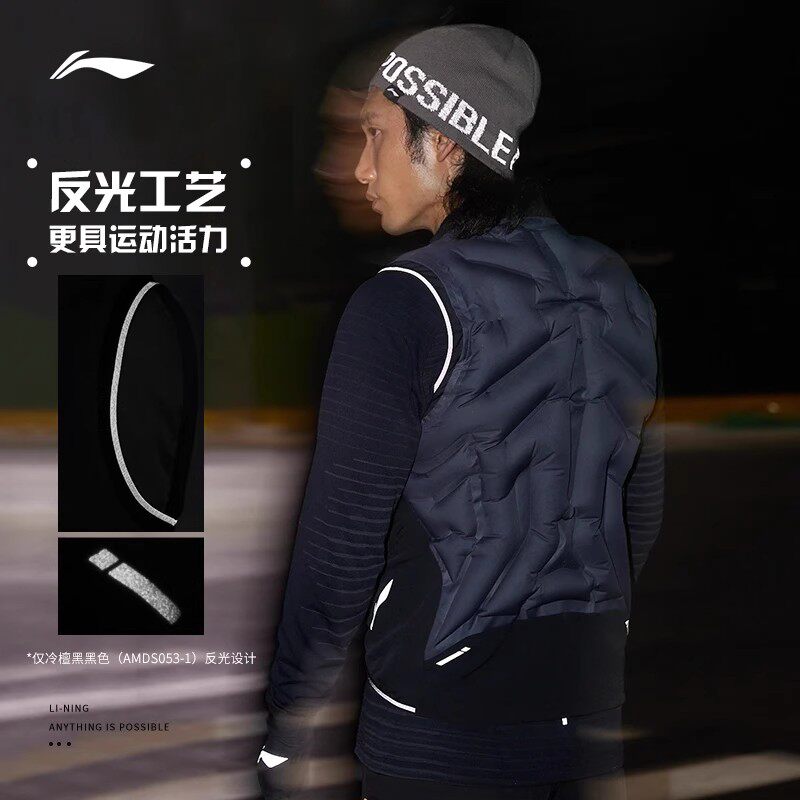 📚 李宁正品新款男子运动休闲立领保暖跑步训练充气马甲外套AMDS053