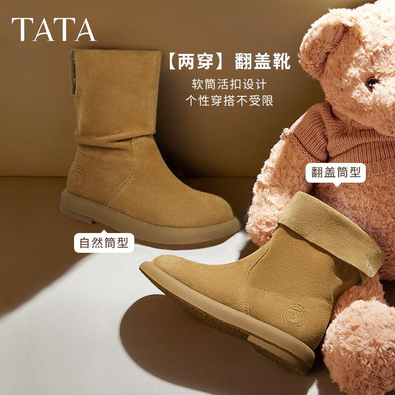 📚 TATA他她小熊靴2025新款加绒西部靴短靴堆堆靴时装靴子CGY01DS4