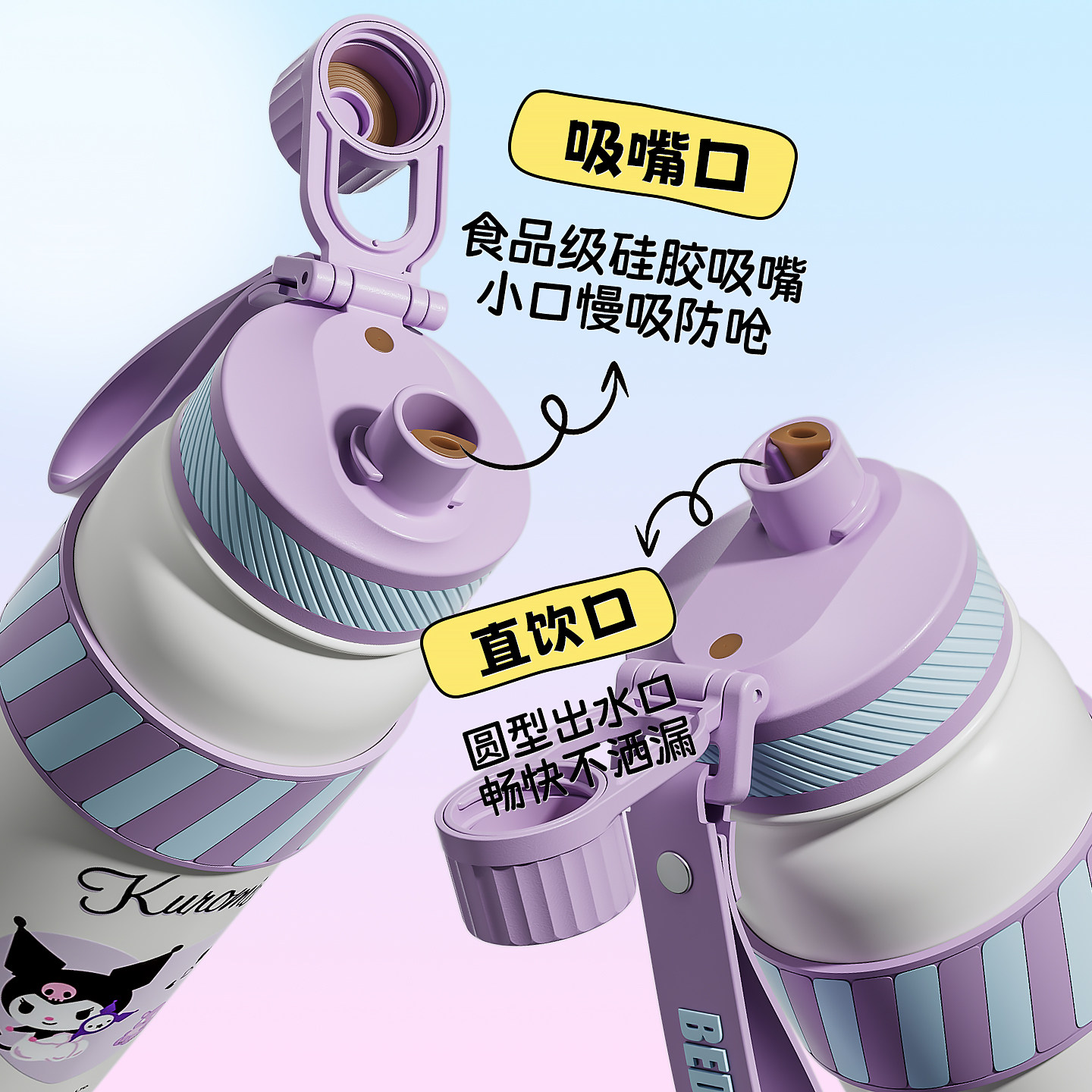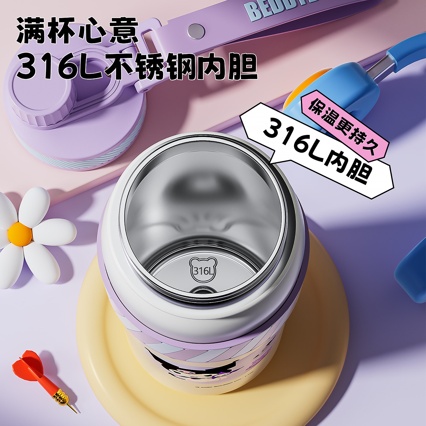 📚 杯具熊朝气保温壶儿童双饮保温杯学生便携水杯提手大容量吸管杯子