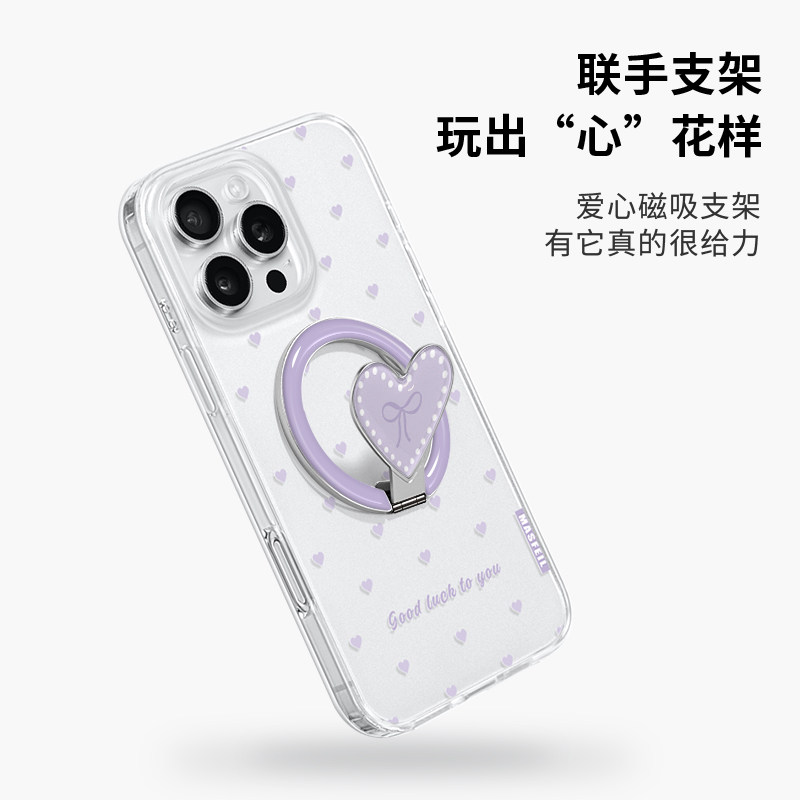 📚 MASFEIL × 豹纹爱心适用苹果17Promax手机壳新款Ro9磁吸带支架iPhone16Pro保护套高级感女ip15pm网红超薄14