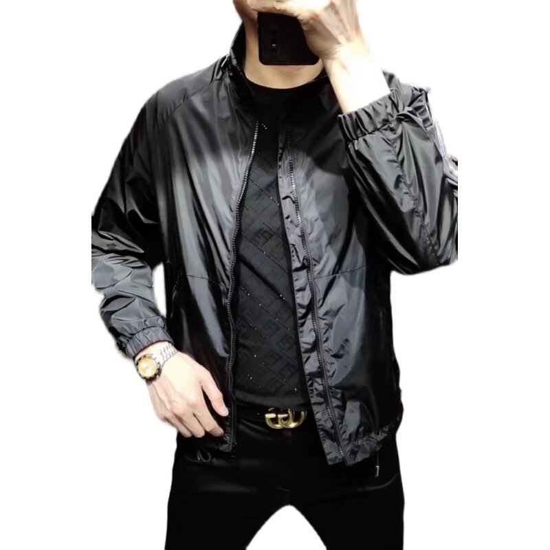 📚 6123春夏季男士立领简单纯色夹克商务休闲上衣外套男春季拉链褂子