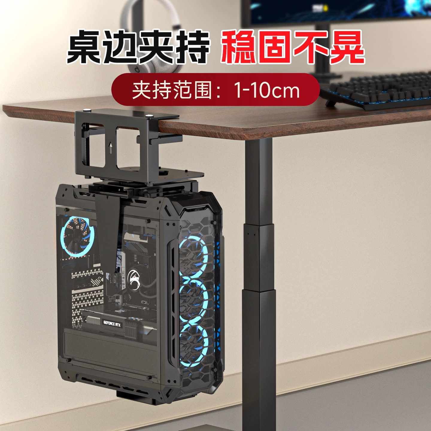 📚 主机托架升降桌免打孔电脑机箱挂架悬空挂式主机电脑吊架侧装夹装