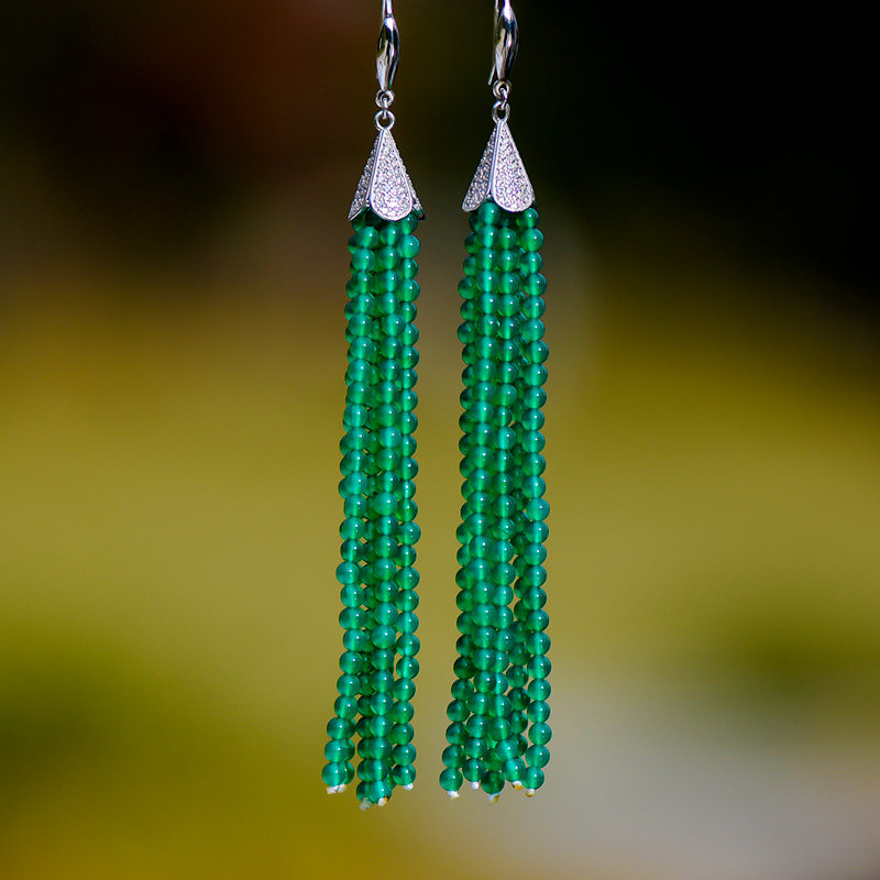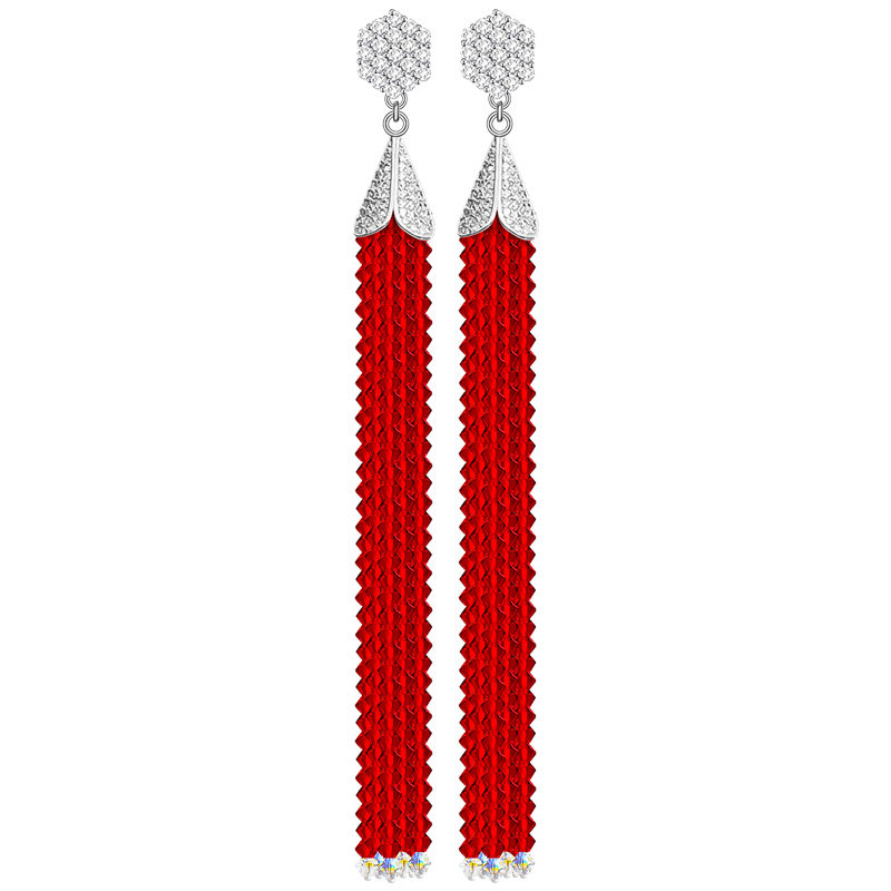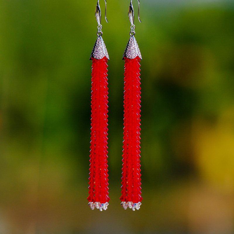 📚 燕歌纯银雪花耳钉水晶耳环长款大红色喜庆花瓣流苏耳坠气质耳饰女