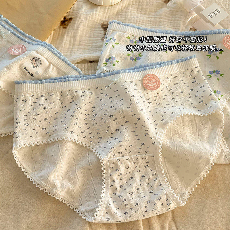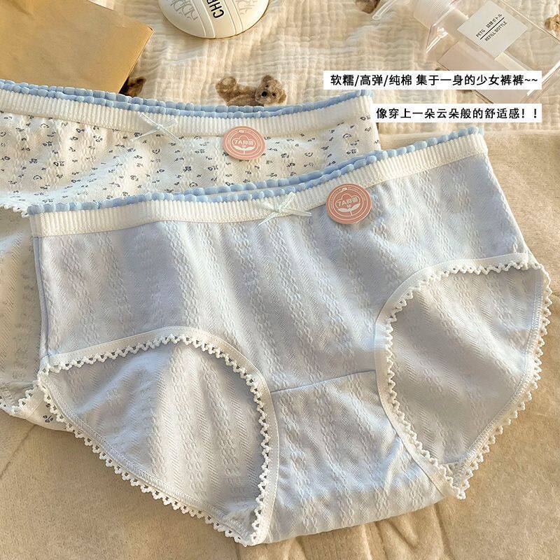 📚 (5条装)纯棉内裤女甜美日系中腰全棉少女新款学生透气三角短裤