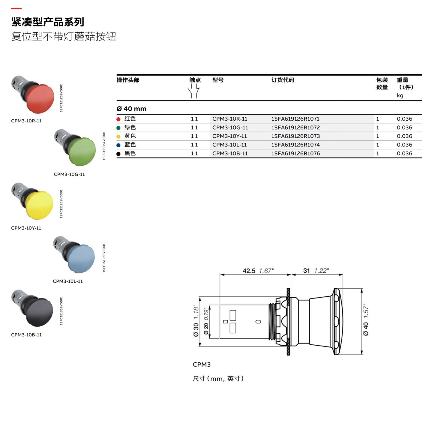 📚 原装正品ABB蘑菇头按钮CPM3-10R-11红色复位开个CPM3-10G-11绿色