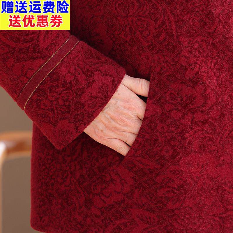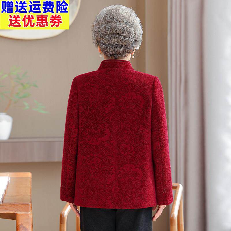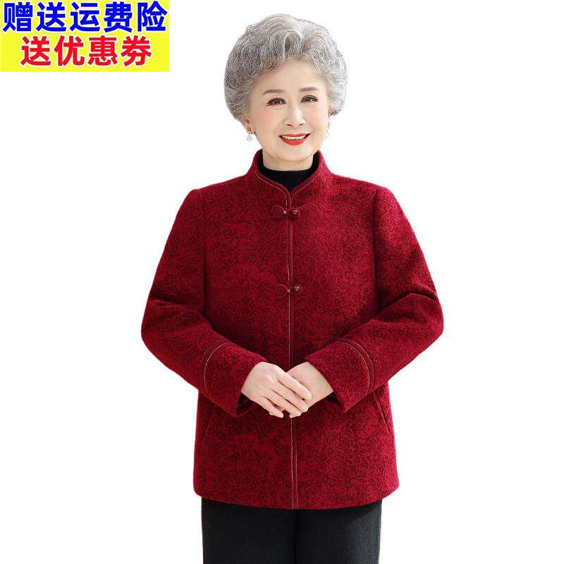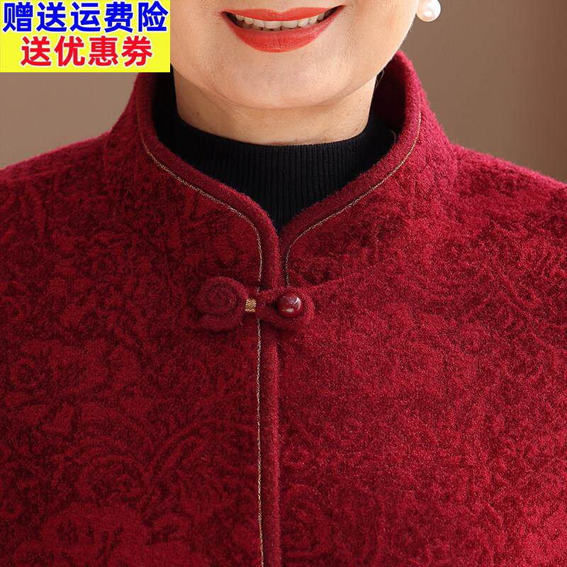 📚 老年人妈妈春装红色羊毛呢子大衣老太太厚款洋气奶奶羊绒毛呢外套