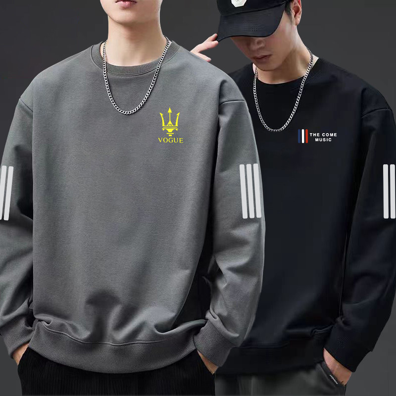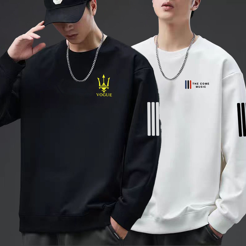 📚 圆领卫衣男春秋季潮流百搭宽松内搭休闲情侣上衣服薄款外套长袖T