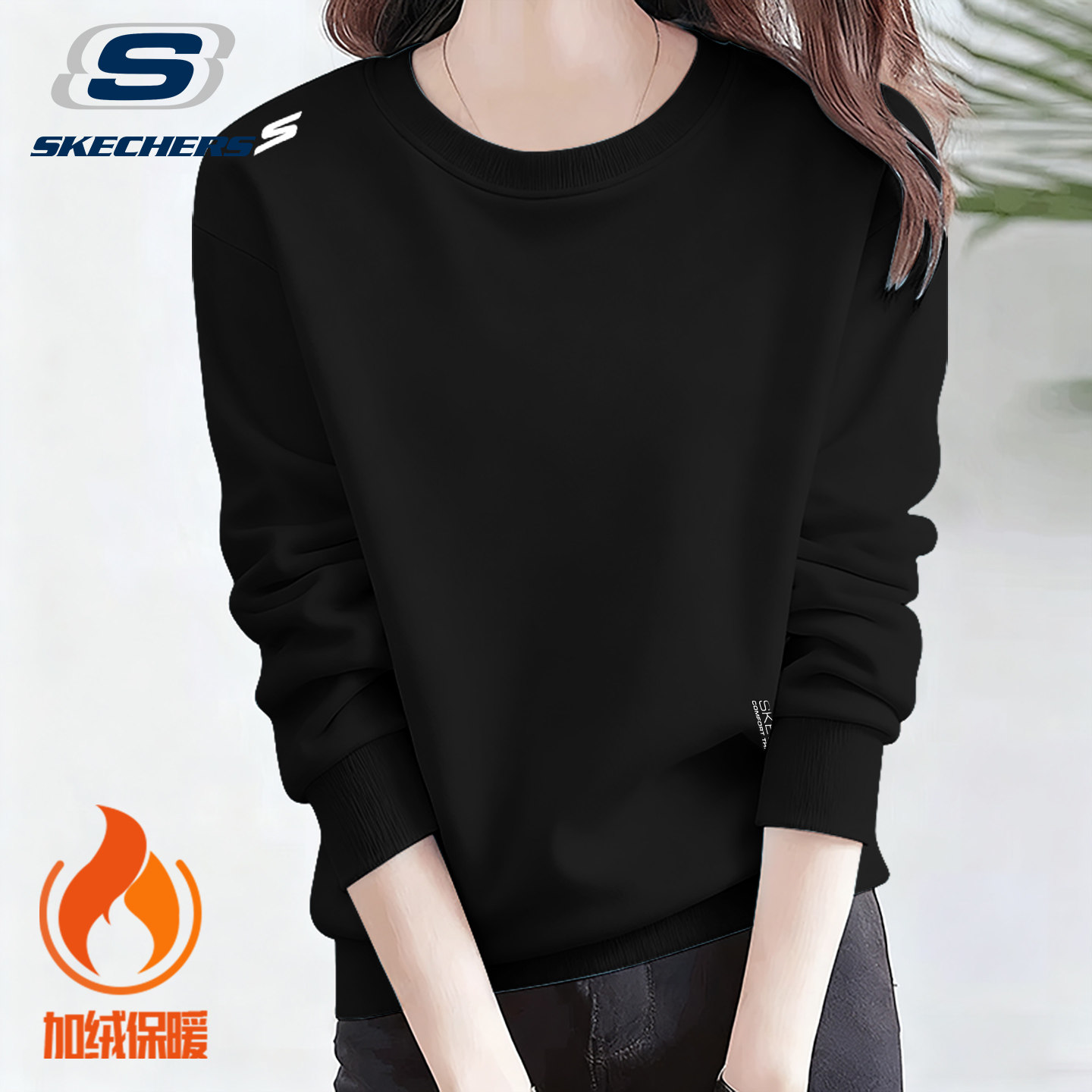 📚 斯凯奇卫衣女款2026冬季棉质加绒套头衫学生潮流宽松休闲长袖内搭