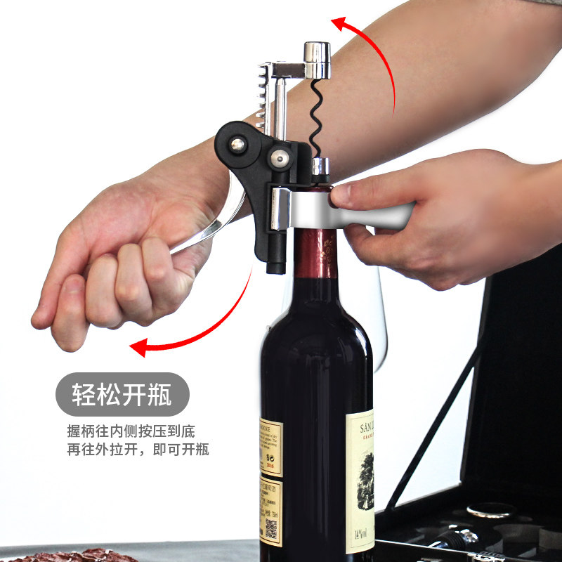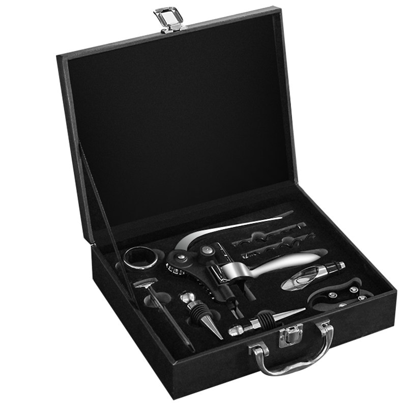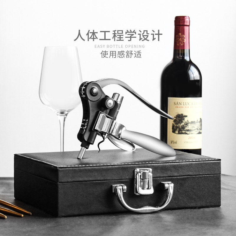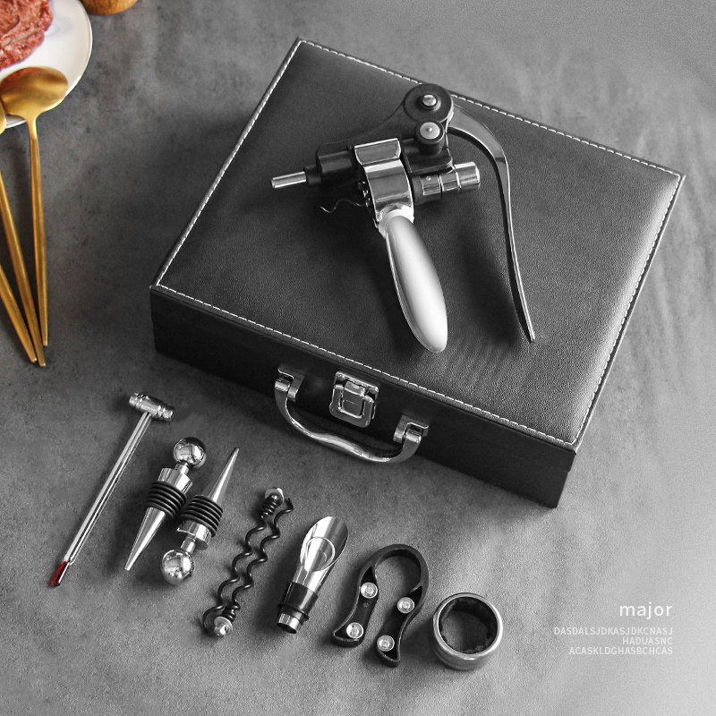 📚 创意红酒开瓶器套装家用葡萄酒开酒器启瓶器皮盒酒具配件九件套装