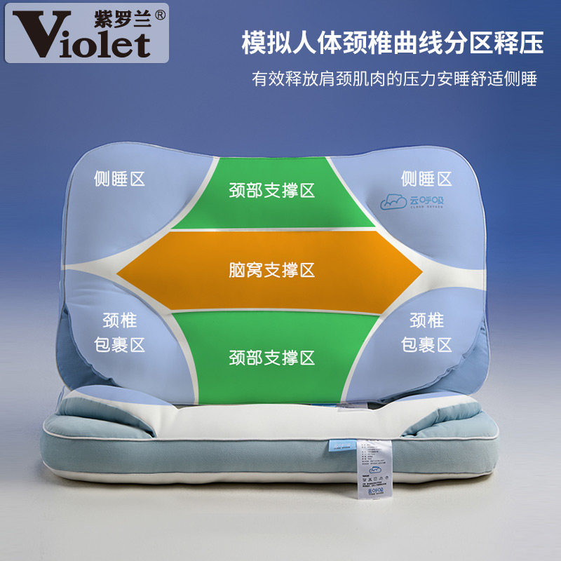 📚 紫罗兰柔感云呼吸反弓牵引护颈枕头枕芯不压脸不压耳柔软云朵枕头