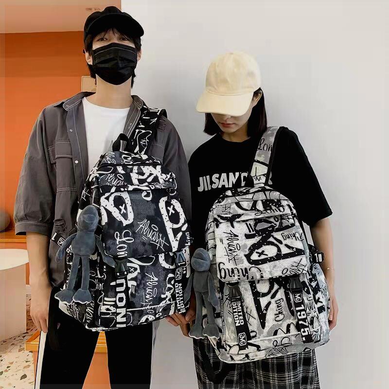 📚 书包男生时尚潮流校园日韩中学生大容量背包潮酷街头双肩包男ins