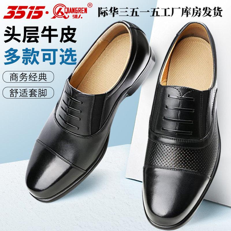 📚 际华3515强人真皮三接头商务正装皮鞋三尖头系带透气男士休闲皮鞋