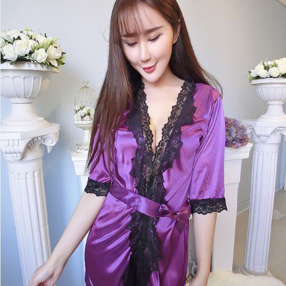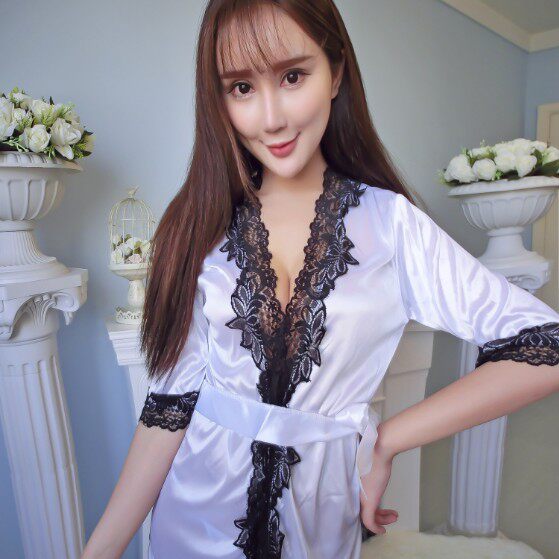📚 情趣睡衣女夏季性感蕾丝开衫系带日式睡袍浴袍女士冰丝超薄款披肩