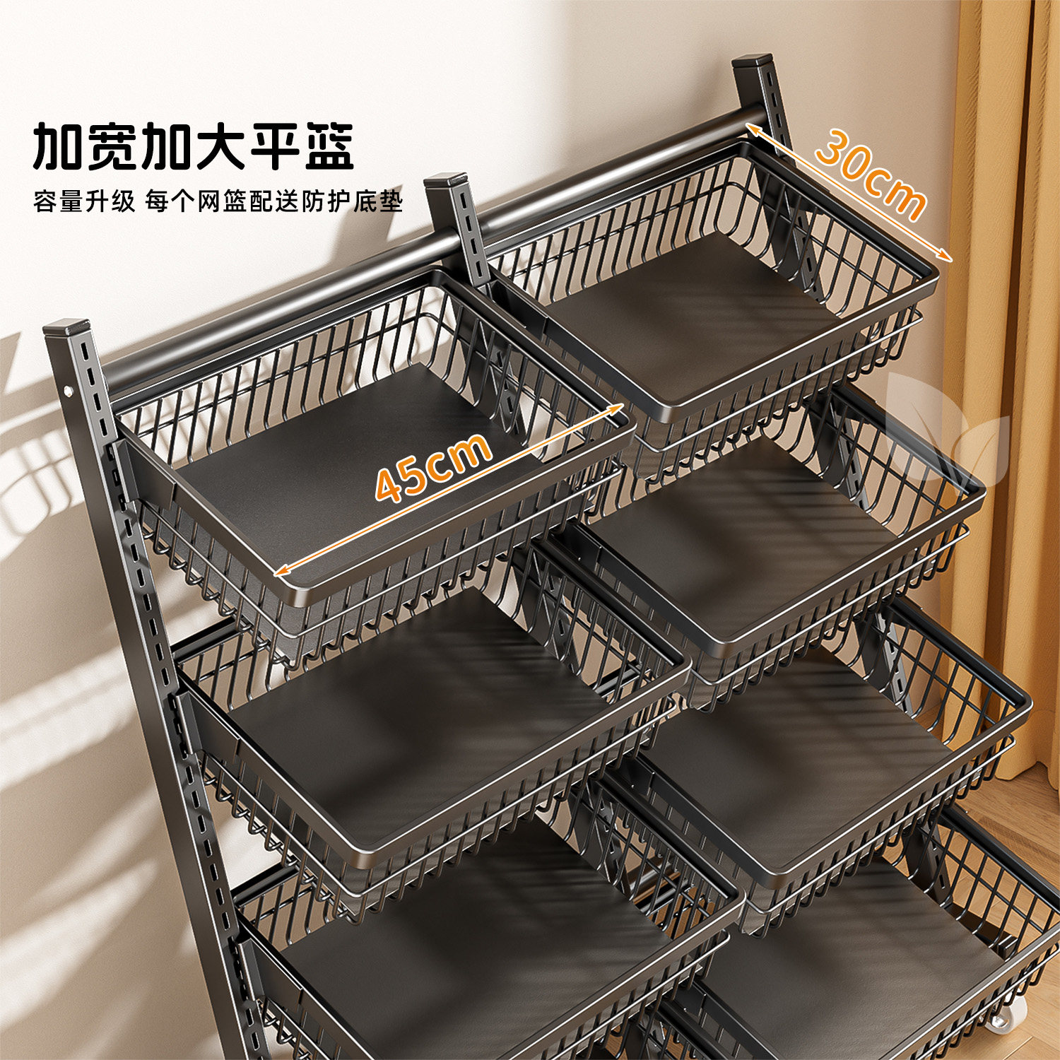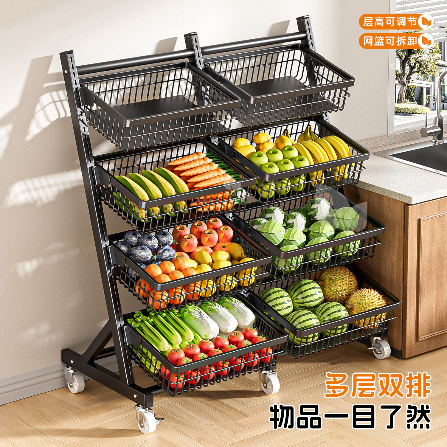 📚 厨房置物架落地多层可移动蔬菜水果菜篮子客厅商用零食收纳展示架