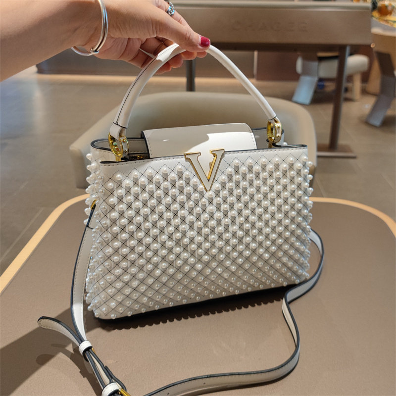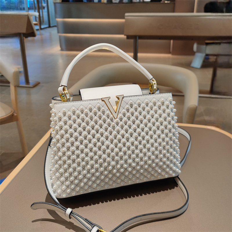 📚 真皮女包轻奢爆款大容量百搭手提包时尚铆钉珍珠水桶单肩斜挎包