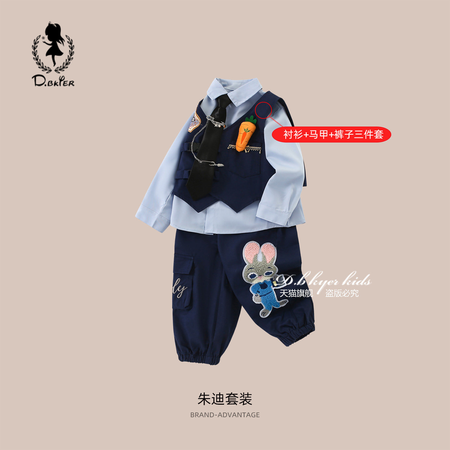 📚 Hi!Fish女童春季套装朱迪兔子警官儿童衣服中大童cos服装三件套