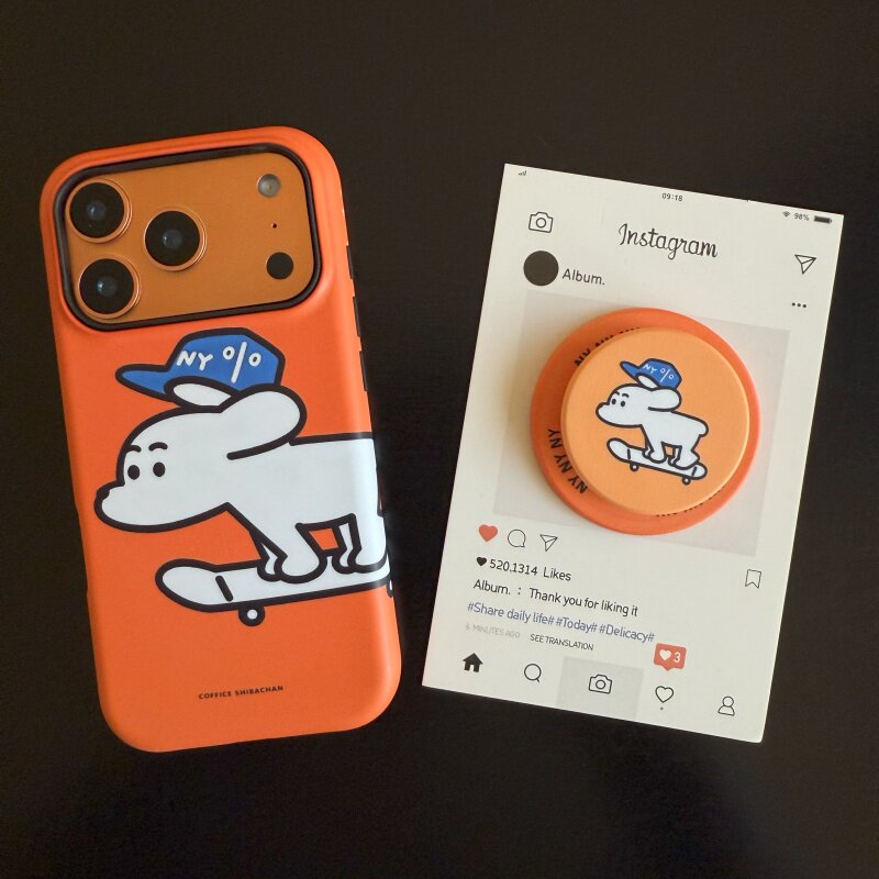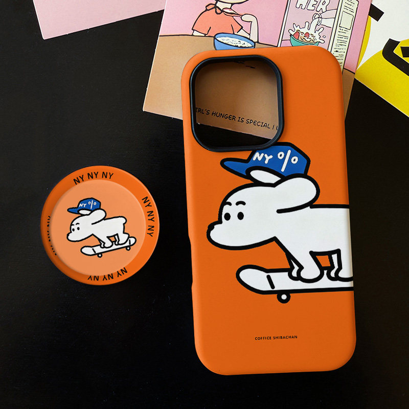 📚 滑板小狗适用苹果17promax手机壳iphone16pro菲林磁吸支架个性华为P80小米15小众vivo防摔保护壳oppo卡通风