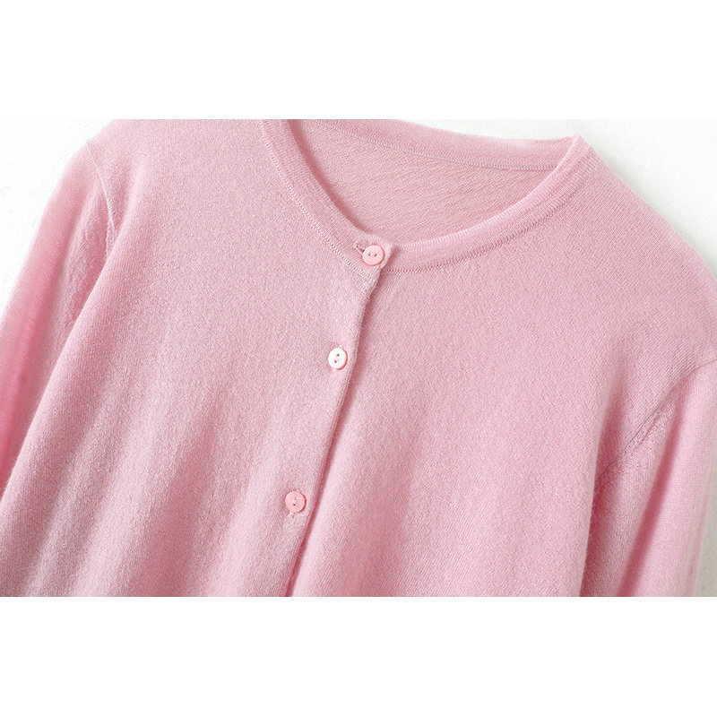 精致的释放~精纺羊绒开衫女圆领针织衬衫纯山羊绒毛衣外套开衫