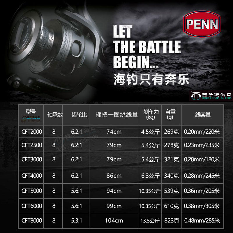 📚 PENN美国奔乐原装进口鱼轮 激荡CFT 淡海水纺车轮 全金属渔线轮