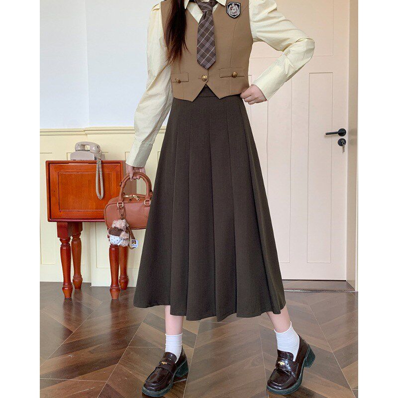 📚 小吉家大码女装秋季新款胖mm高腰百褶半身裙中长款西装a字长裙子
