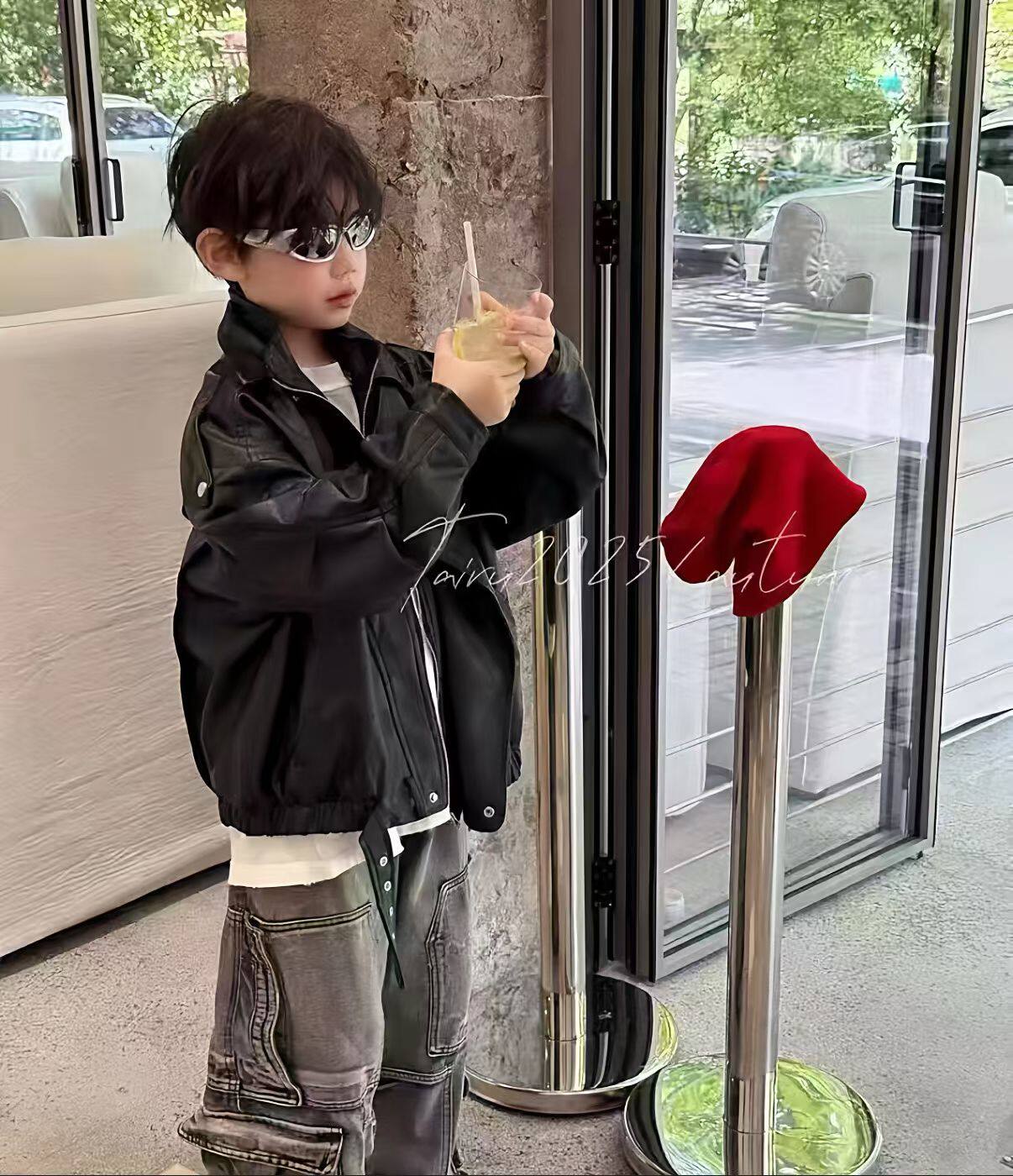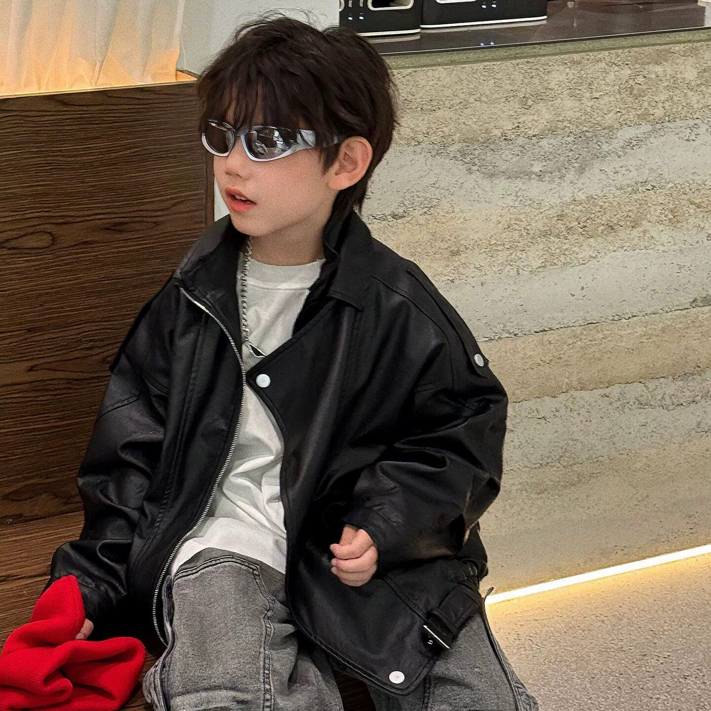 📚 儿童超软皮衣外套2026春款中大童韩版洋气百搭宽松皮夹克外套潮