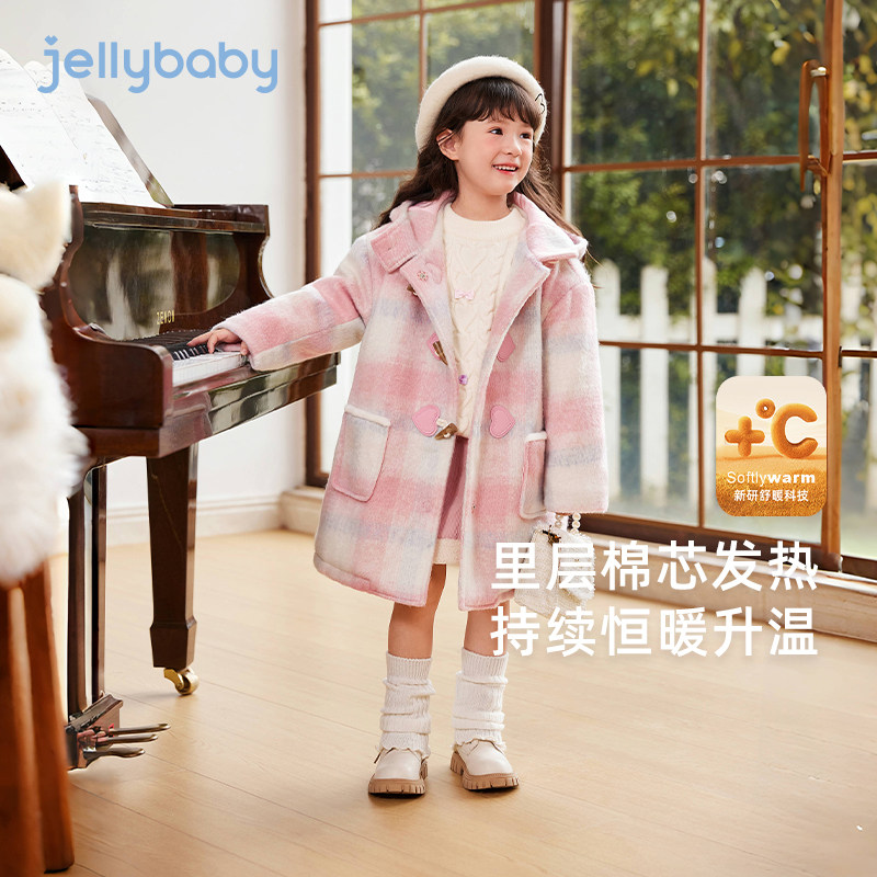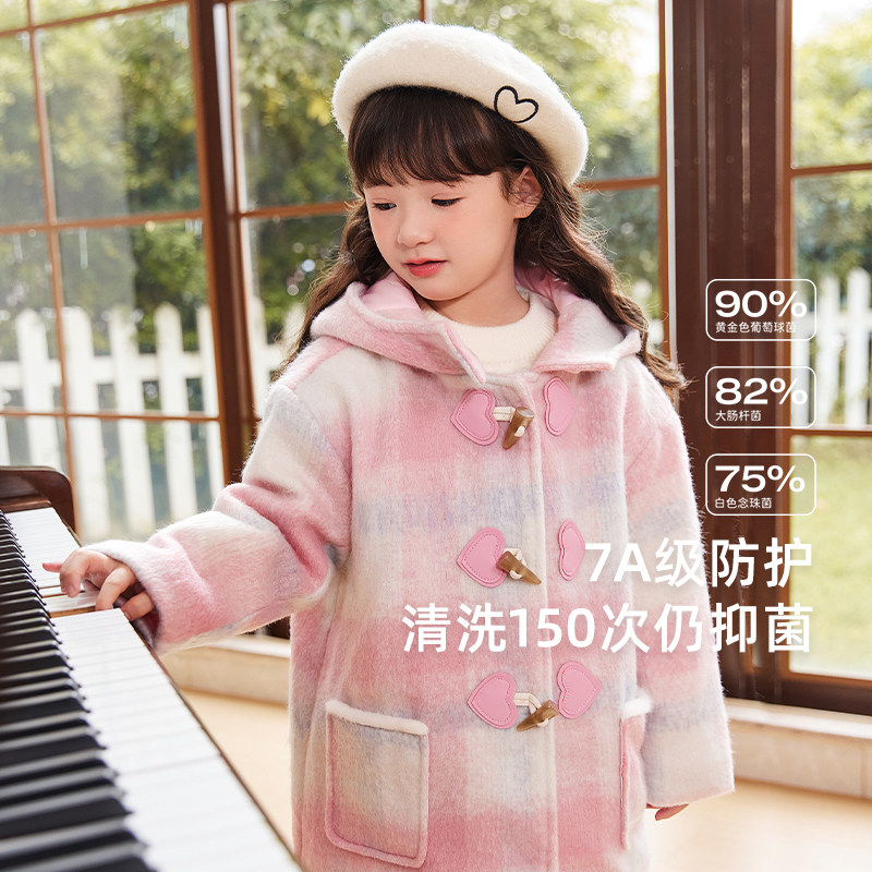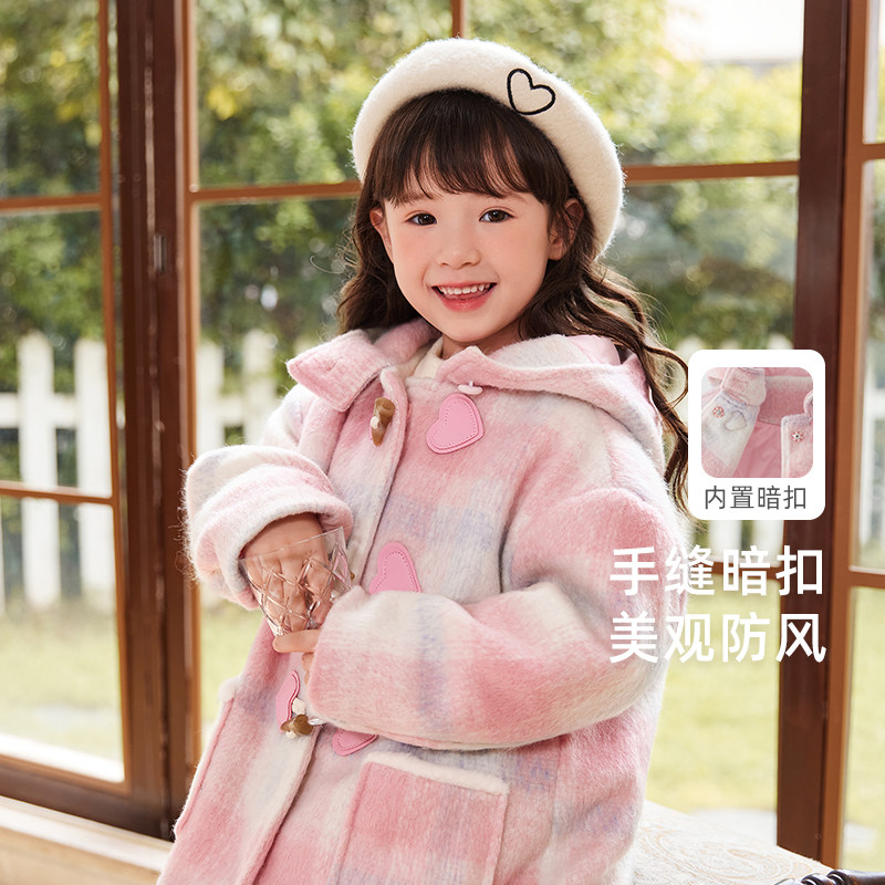 📚 [远红外锁温]女童夹棉外套大童牛角扣呢子大衣甜美连帽潮宝宝冬装