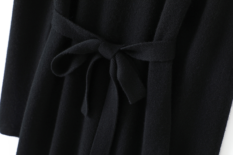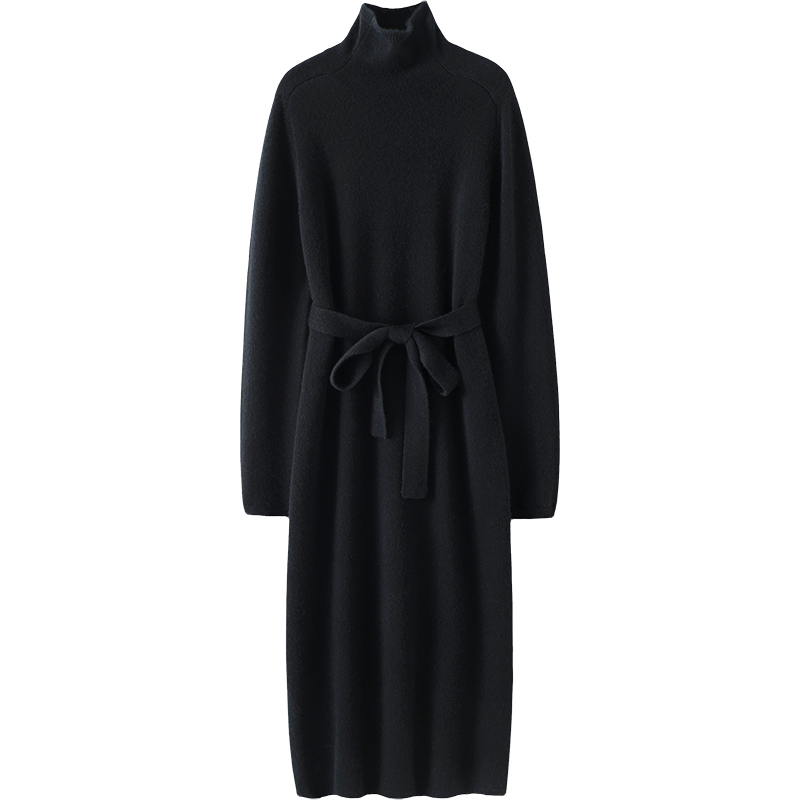 📚 直白气质!系带加厚高领羊绒衫女长款连衣裙纯羊绒毛衣针织裙子