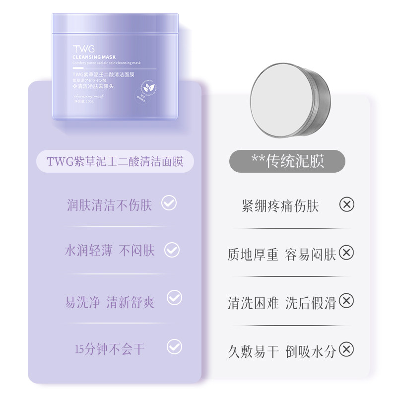 📚 壬二酸清洁泥膜紫草祛痘改善黑头粉刺毛孔舒缓控油涂抹面膜清洁