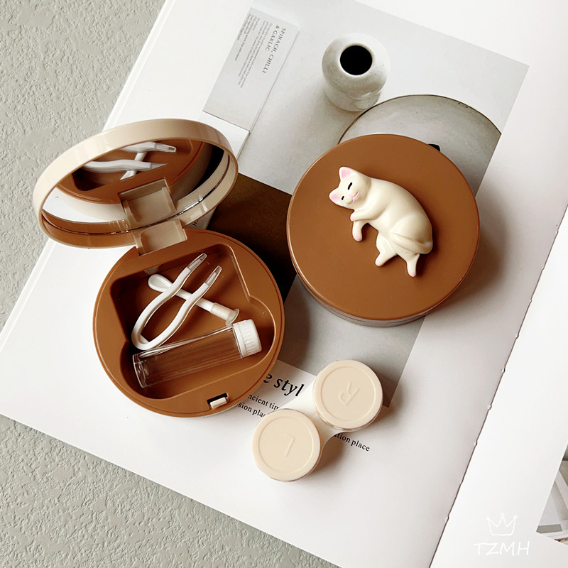 📚 喵~隐形眼镜盒ins简约便携高级感高档轻便防漏可爱女卡通美瞳盒子