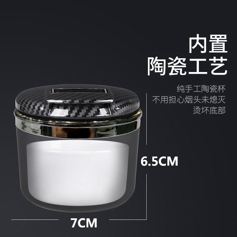 📚 汽车车载烟灰缸不挡盖板可拉盖小号陶瓷内胆迷你烟灰缸车用带夜光