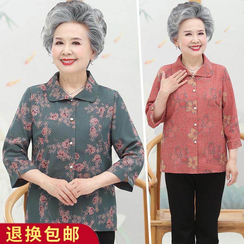 📚 老年妈妈装春秋60岁老人女奶奶薄款夏装太太夏季衬衫