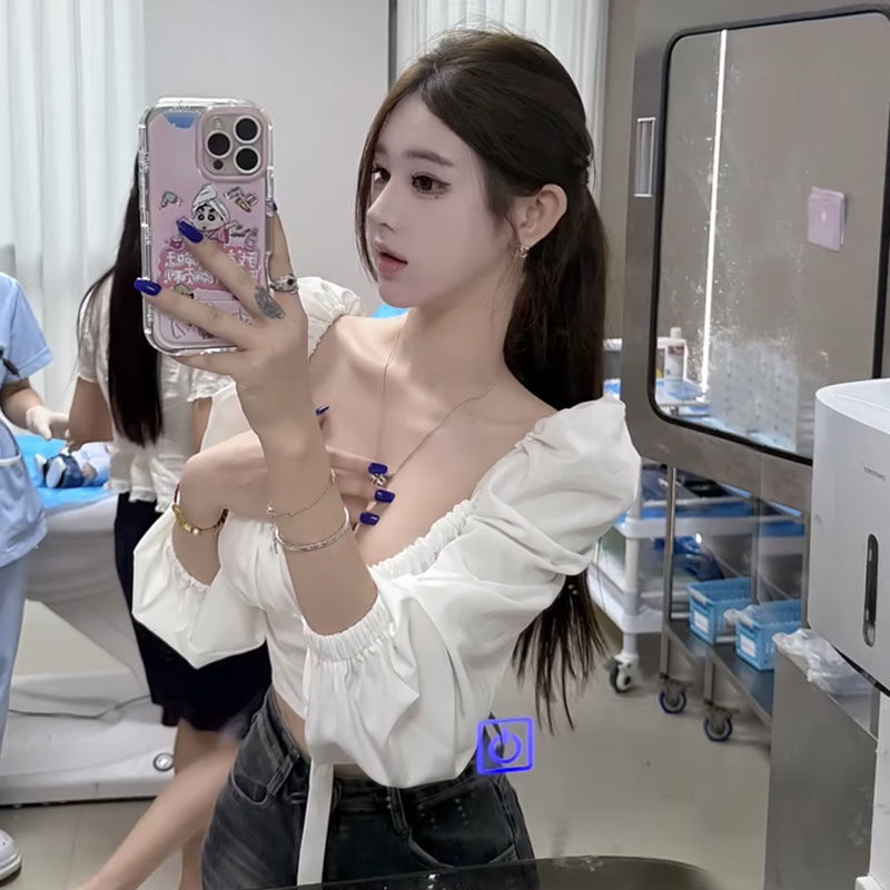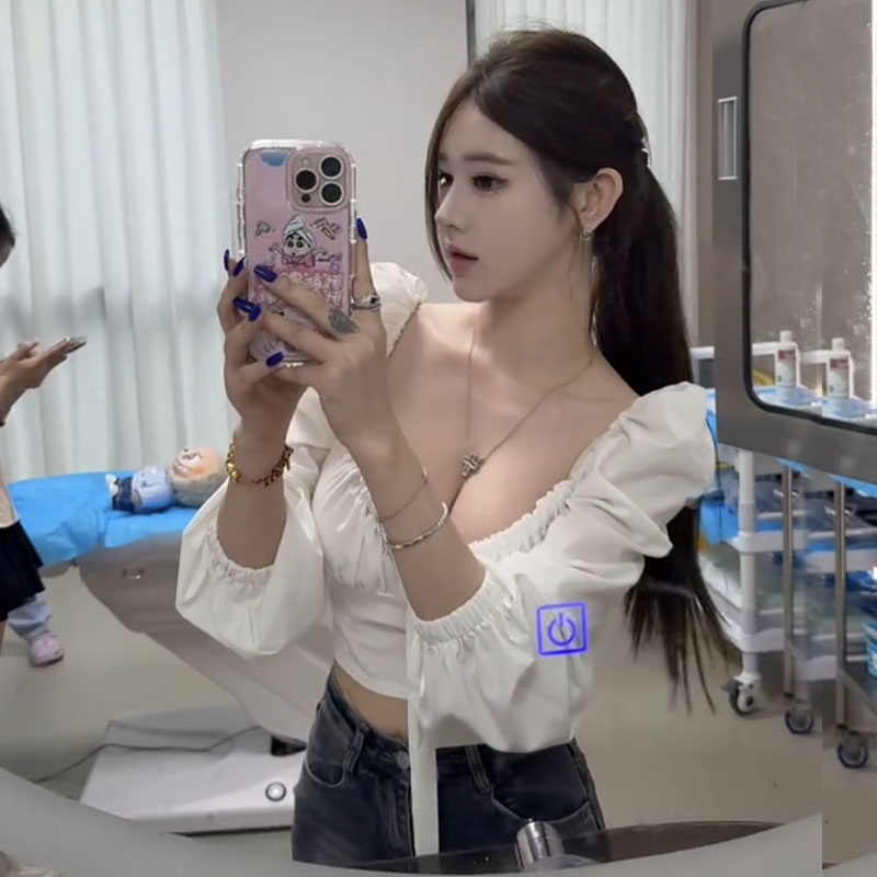 📚 纯欲风辣妹性感白色短款长袖衬衫女气质修身显瘦内搭打底上衣女