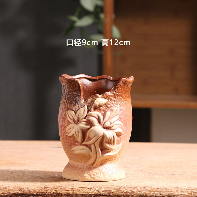 📚 磨砂棕色小号老桩多肉花盆陶瓷特价简约家用阳台陶土粗陶陶盆清仓