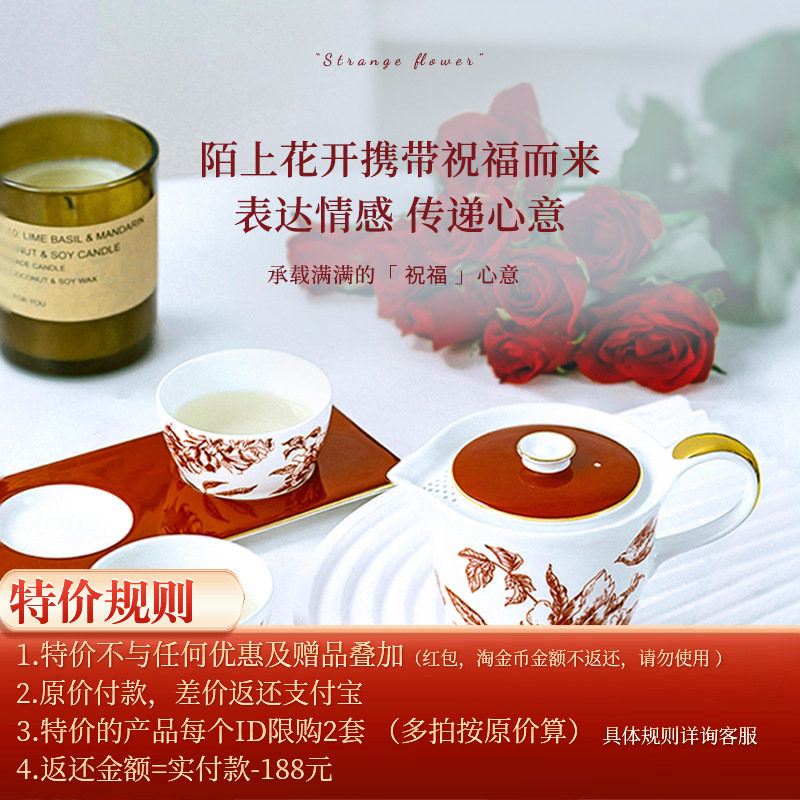 📚 高淳陶瓷陌上花开中式喜庆婚宴茶具骨瓷红色送礼订婚新年敬茶茶具