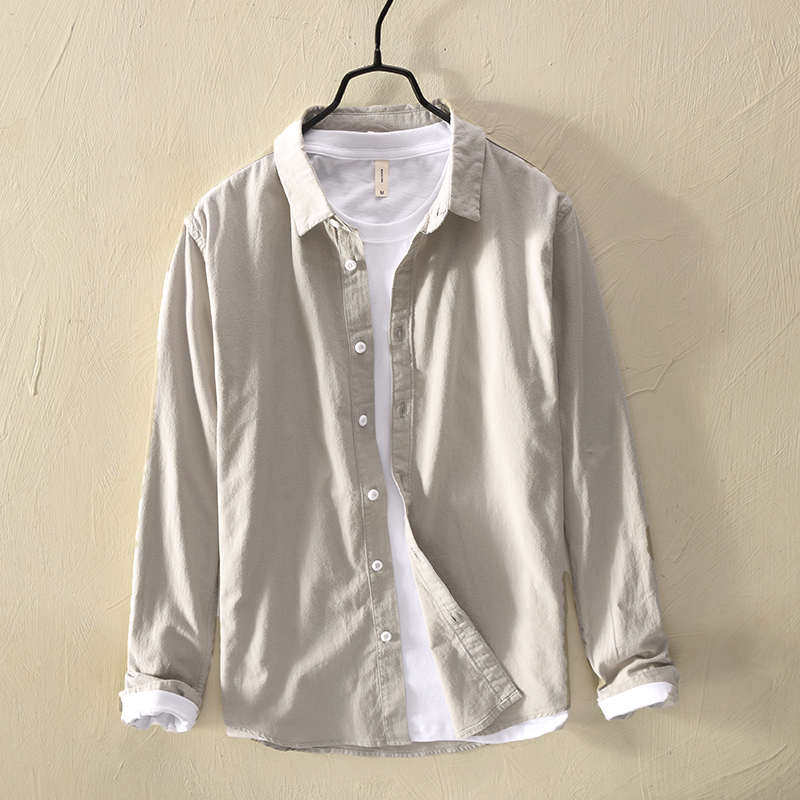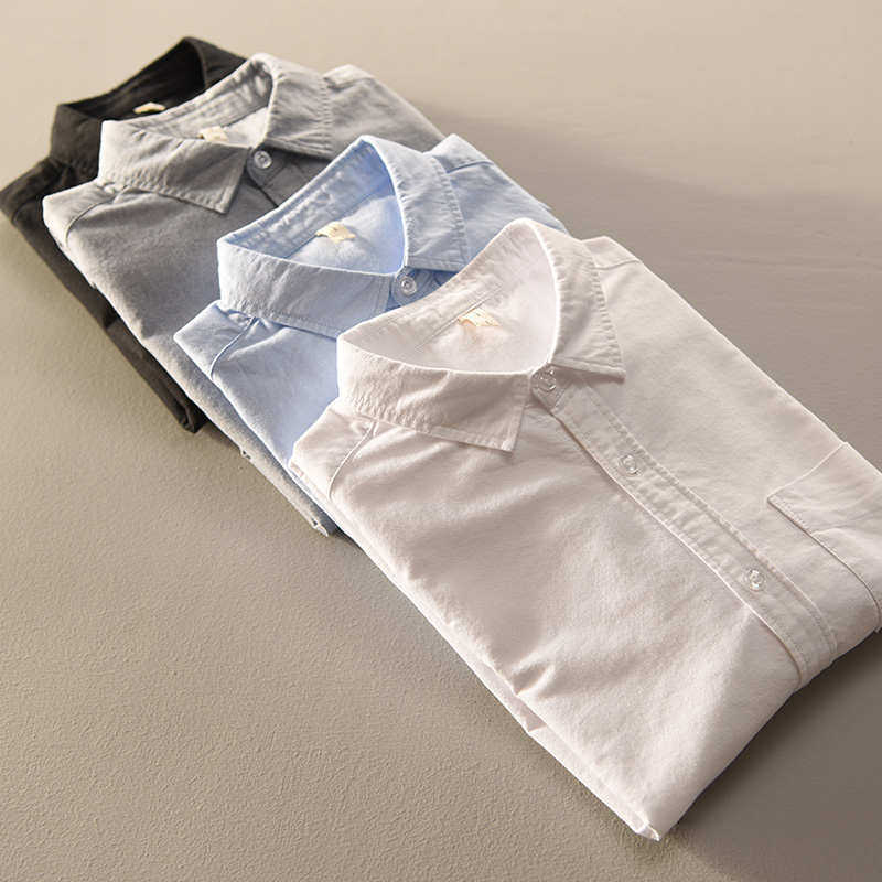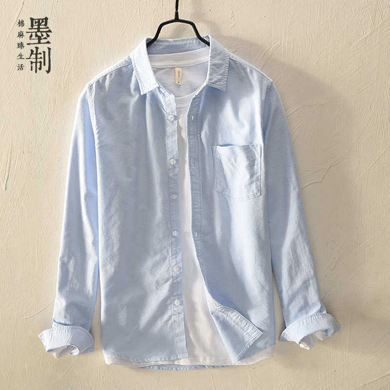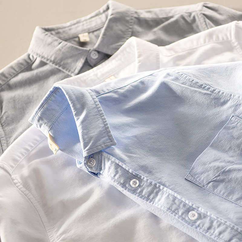 📚 春秋季薄款牛津纺衬衫男长袖宽松潮流百搭纯色衬衣外穿休闲白衬衫