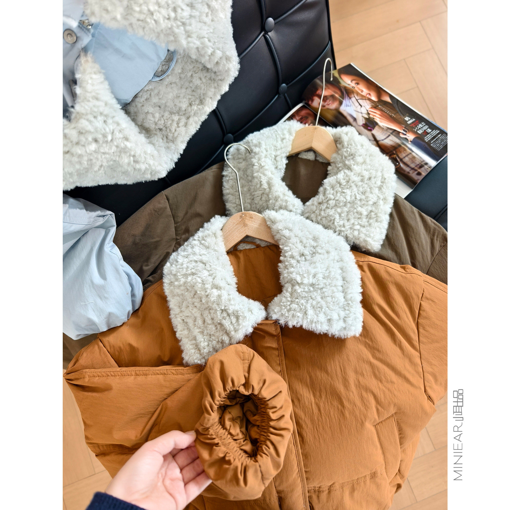 📚 小耳出品萣制肌理棉/卷毛大翻领/针织下摆 90%白鸭绒短款羽绒服