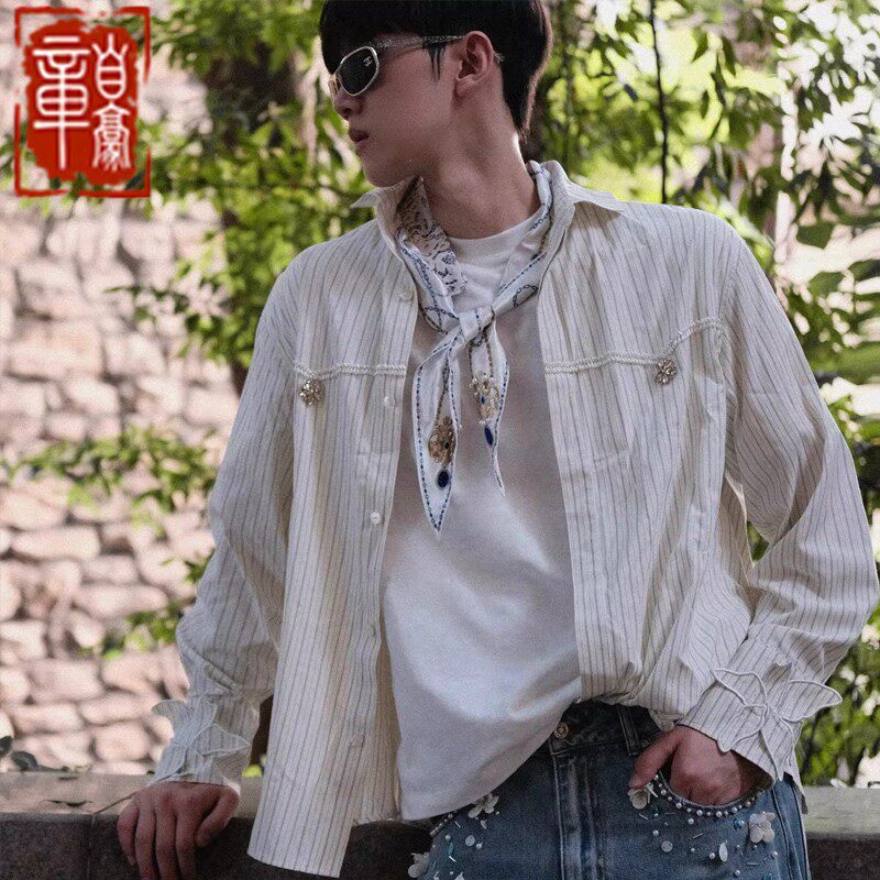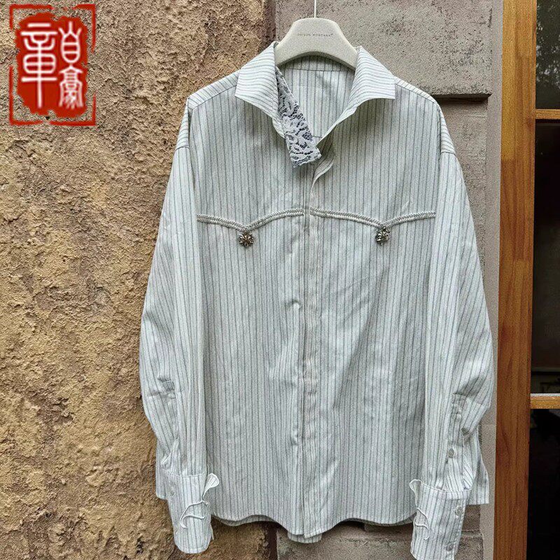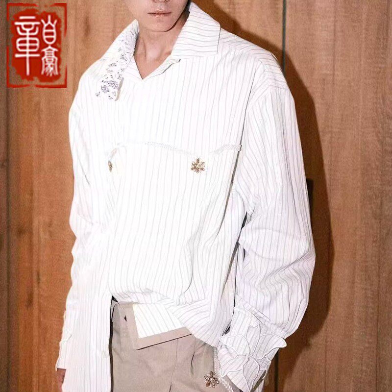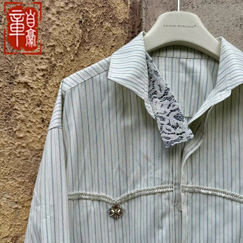 📚 【章自豪】Orison Morgana木槿花搭片珍珠水钻条纹衬衫老钱风衬衣