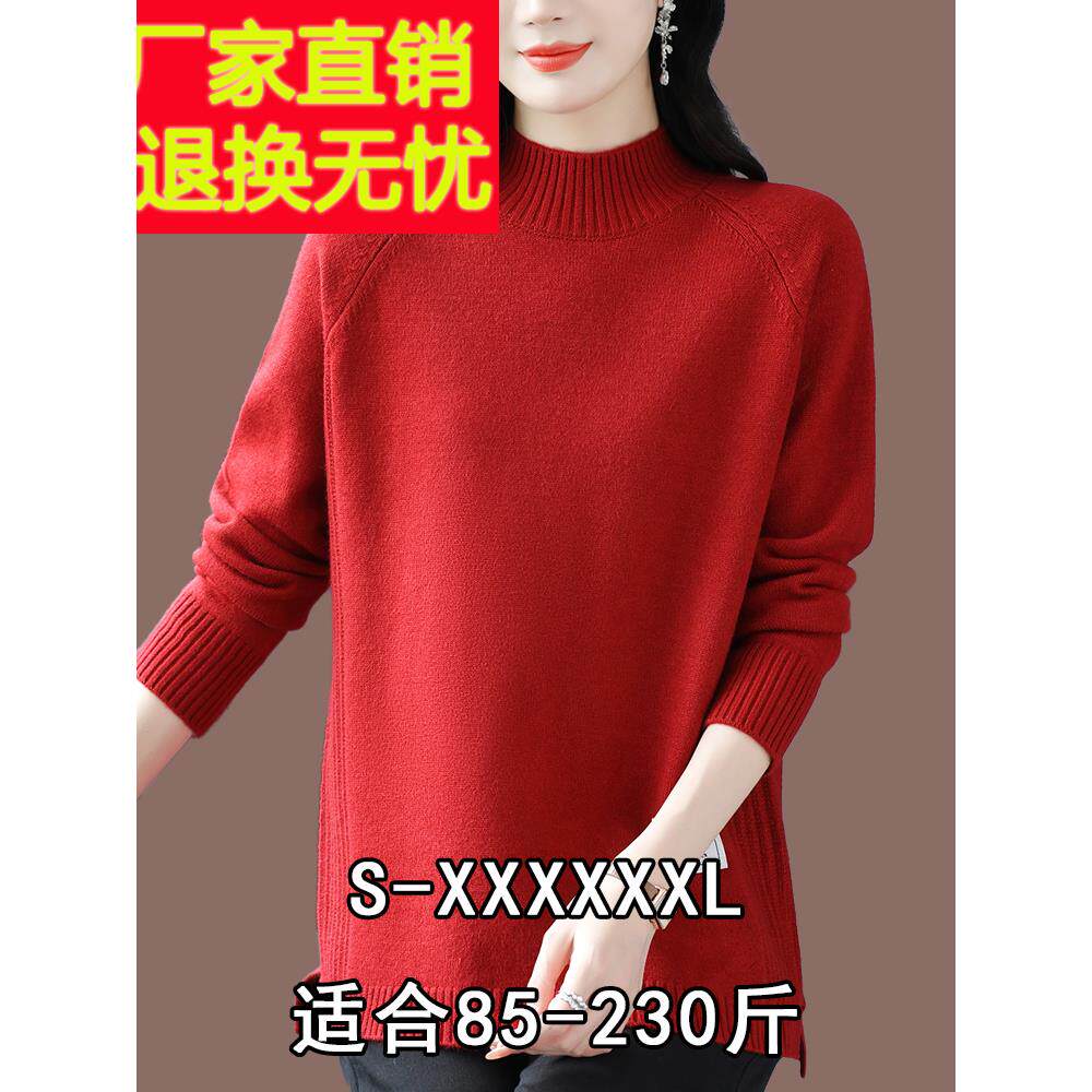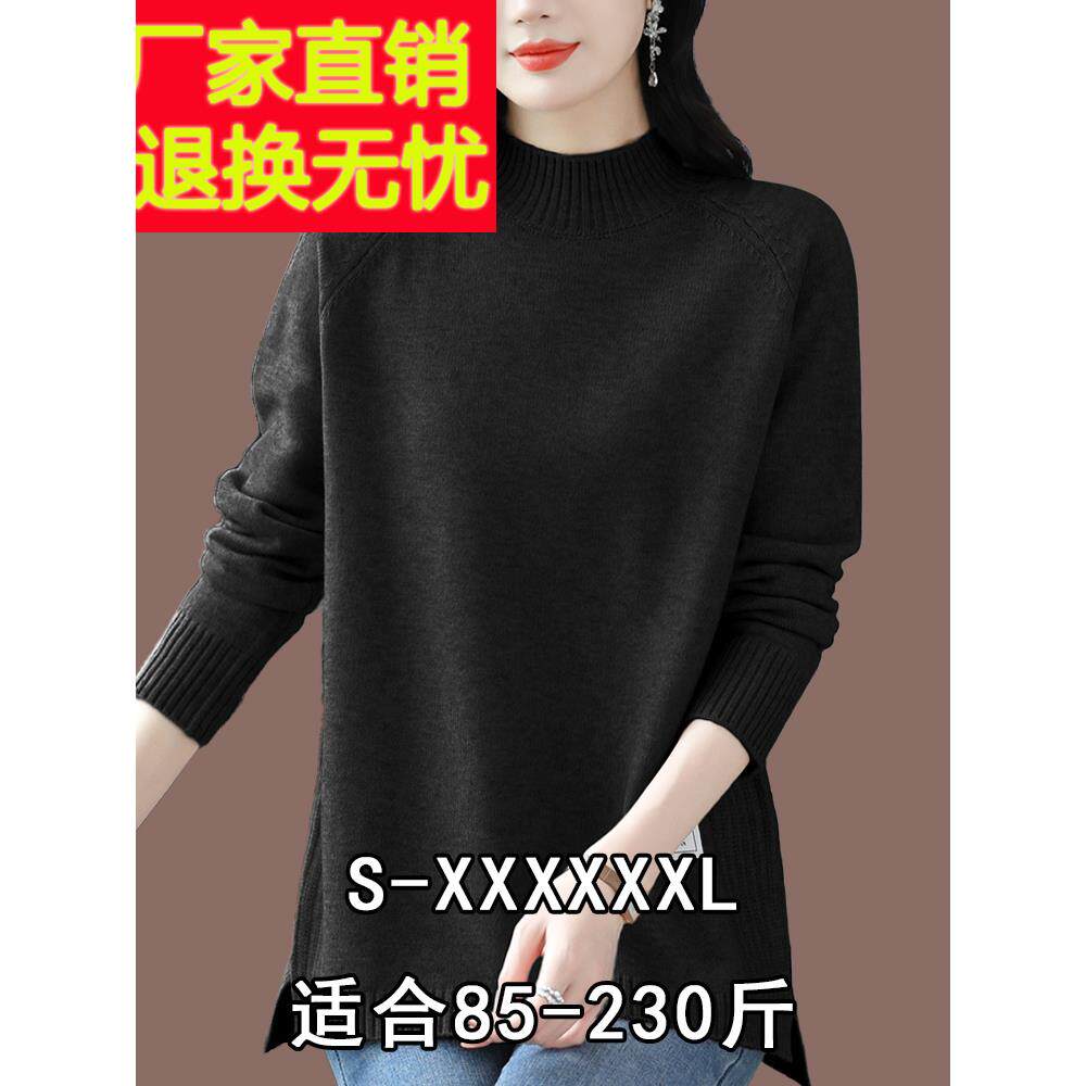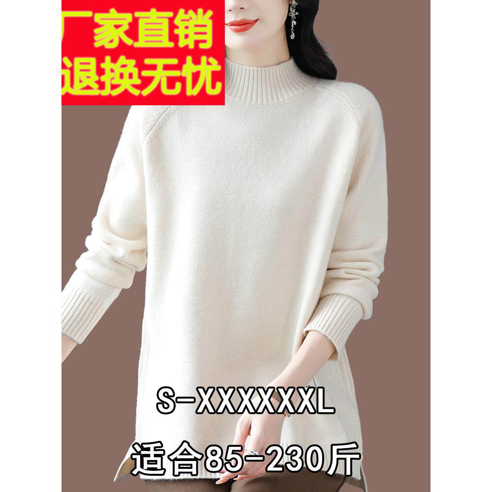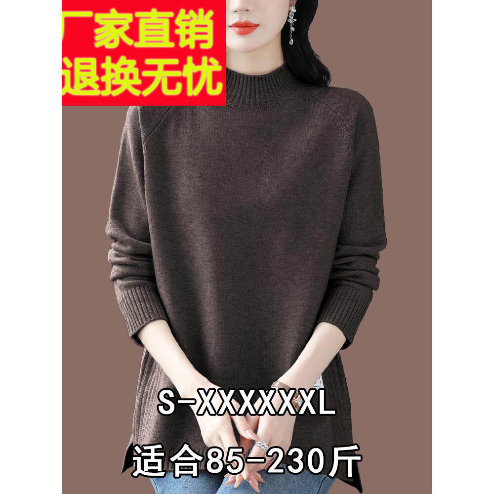 📚 胖mm特大码女装秋冬遮肚羊绒衫纯色毛衣宽松半高领打底羊毛衫上衣
