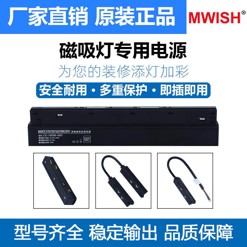 📚 明伟磁吸轨道灯变压器48v100W200暗装明装一体内置电源无主灯驱动