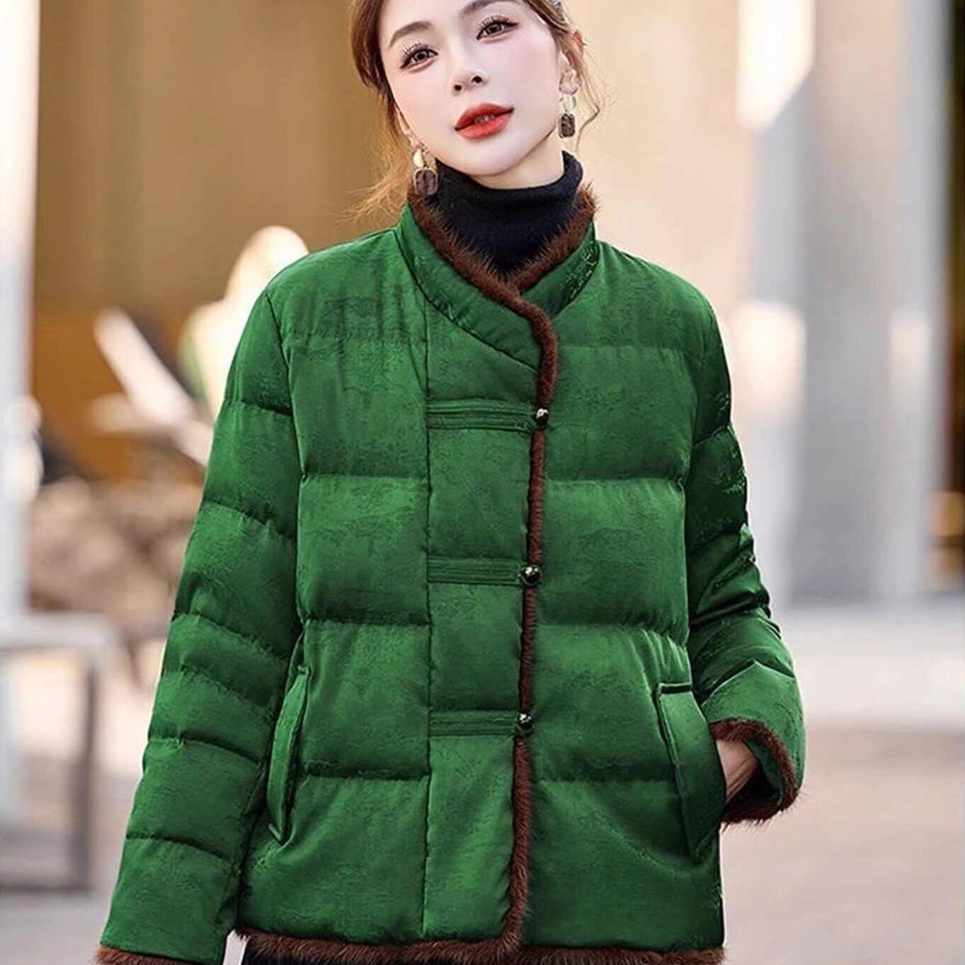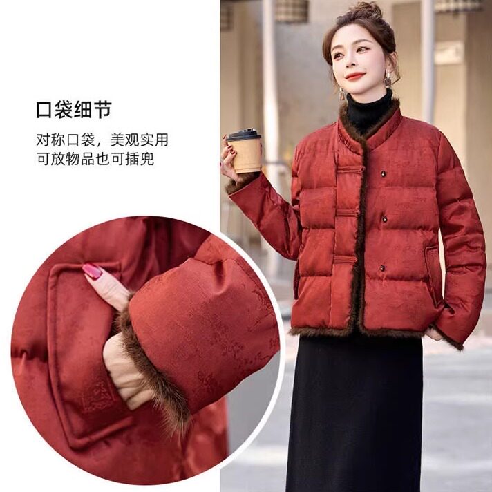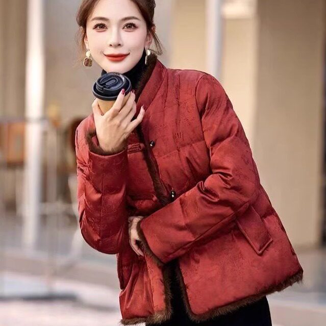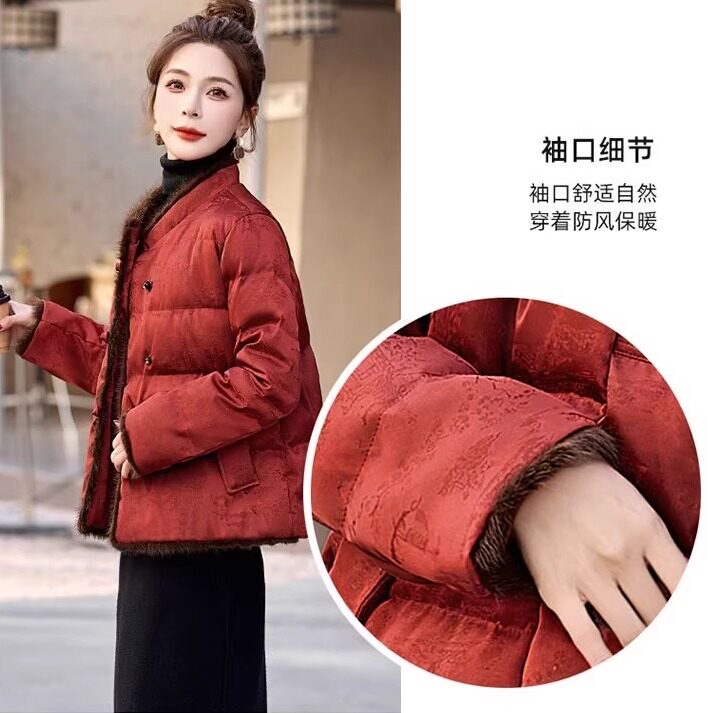 📚 新中式复古风棉服女2025冬季立领盘扣加厚保暖妈妈装优雅棉袄外套
