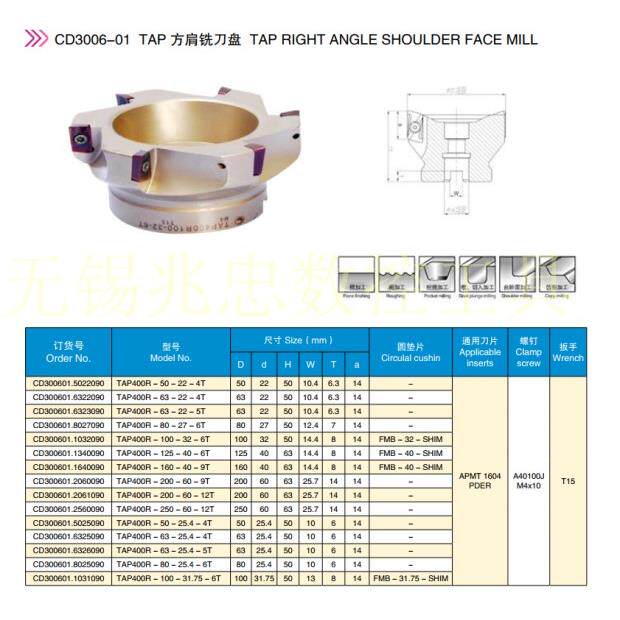 📚 BAP/TAP400R-50/63/80/100/125/160 200 250直角台肩平面铣刀盘
