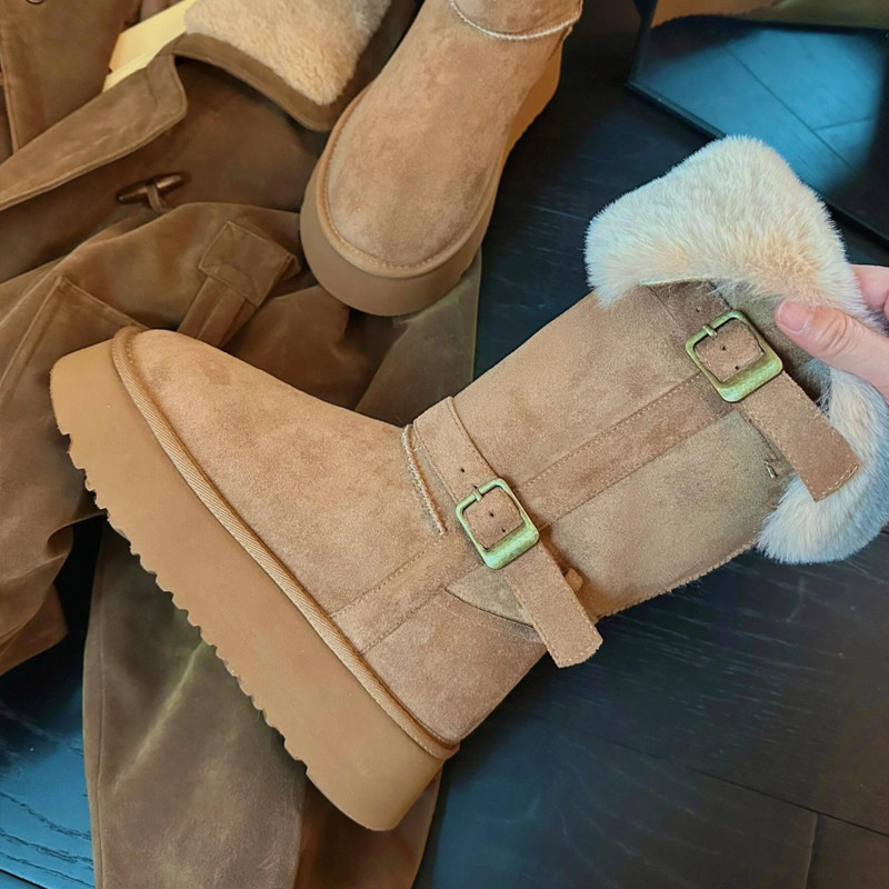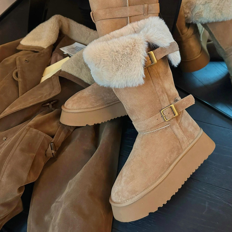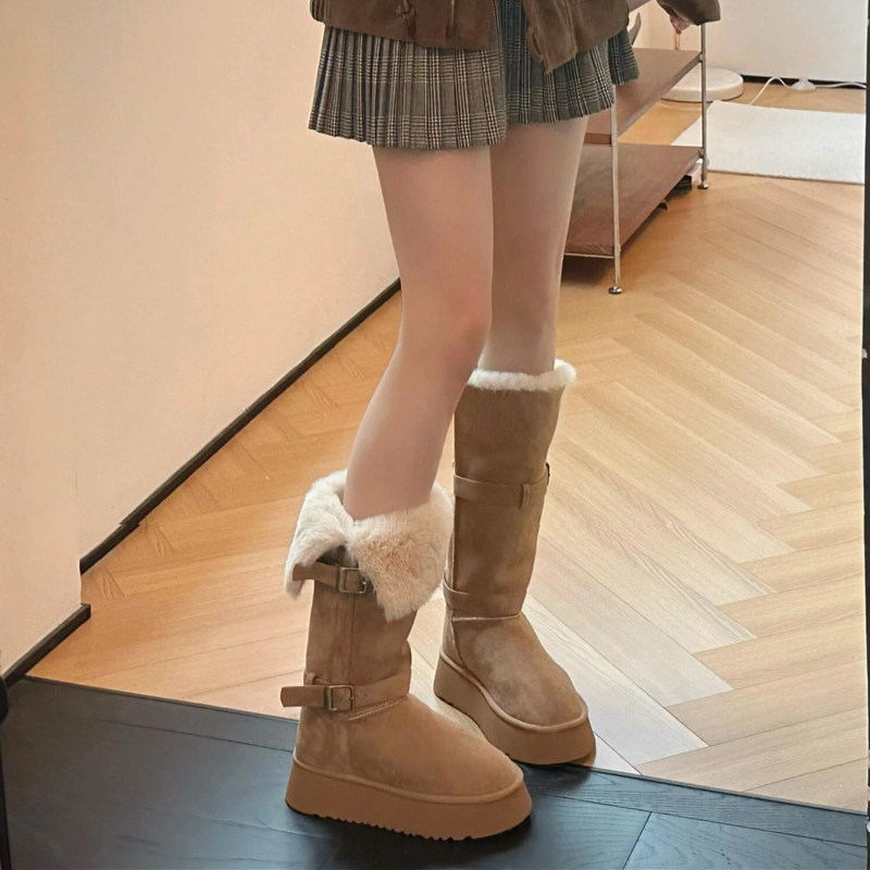 📚 厚底长筒栗色雪地靴女加绒羊毛棉鞋2025年冬季新款东北保暖高筒靴