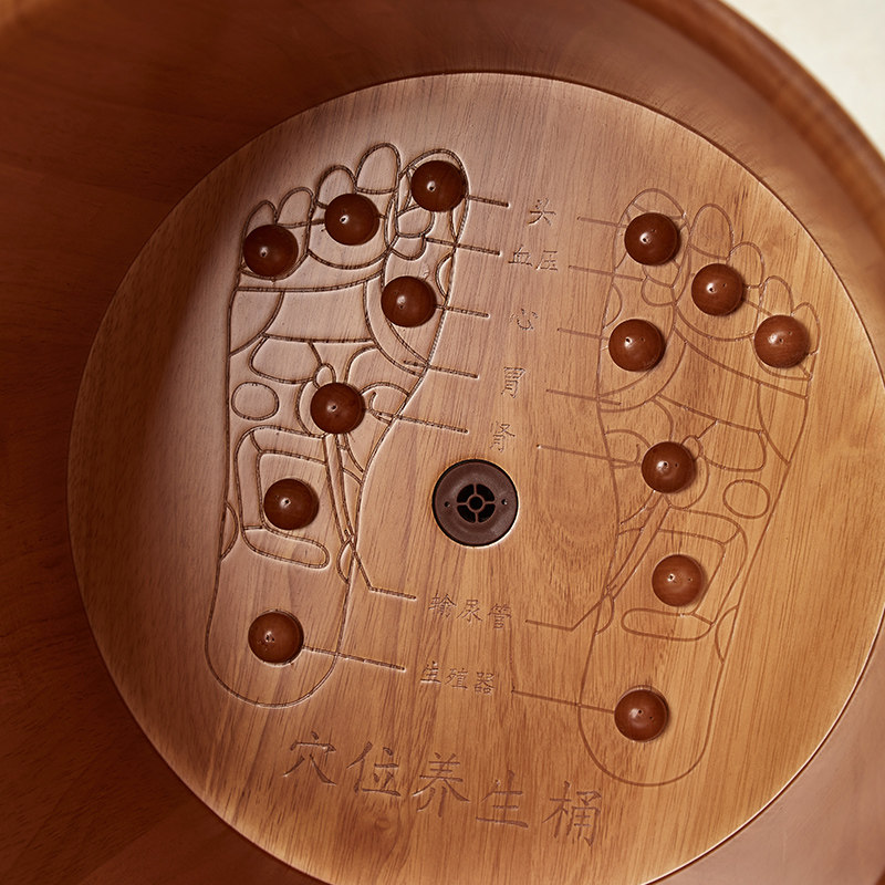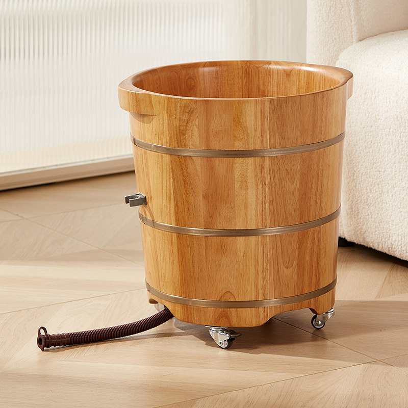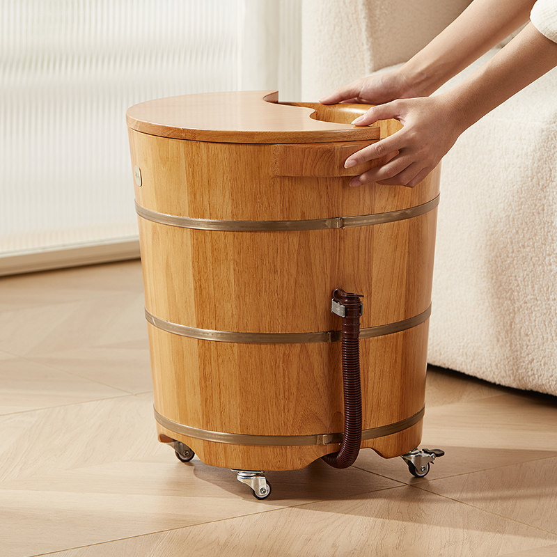 📚 橡木泡脚桶过小腿高深桶家用养生足浴桶洗脚木桶木盆带轮子带排水