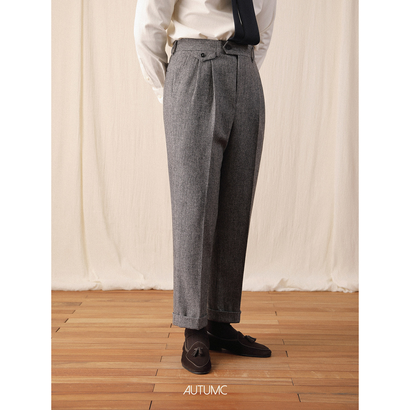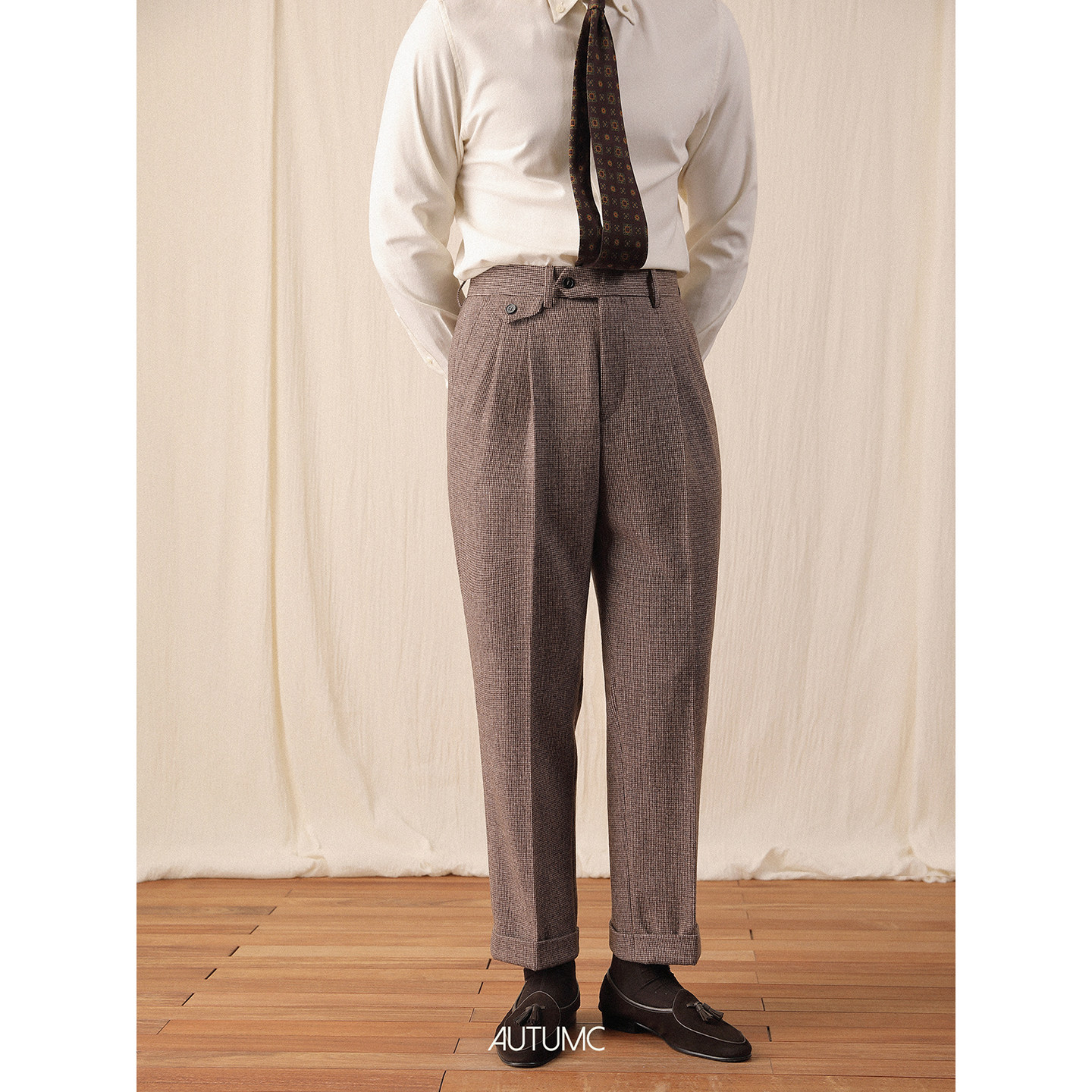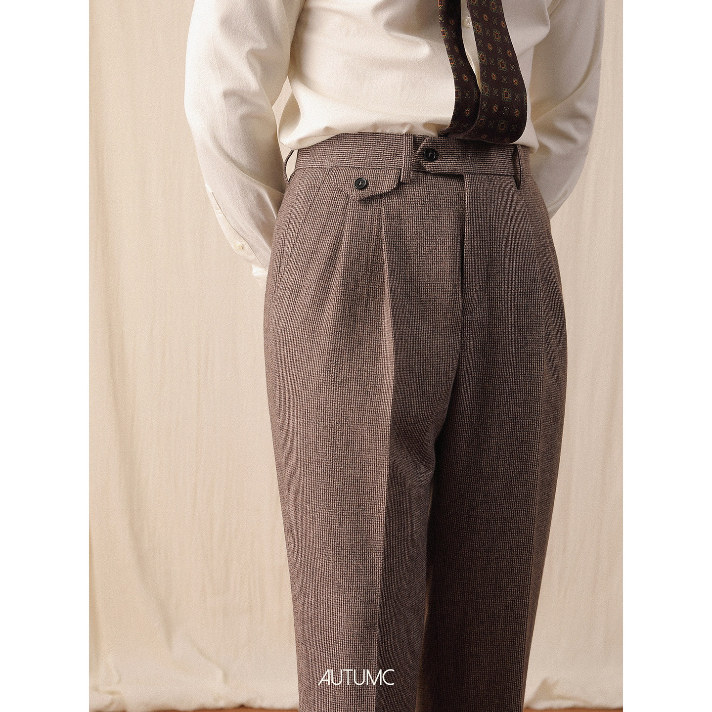 📚 千鸟格羊毛西裤男秋冬季直筒绅士休闲免烫长裤商务意式保暖高腰裤