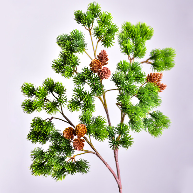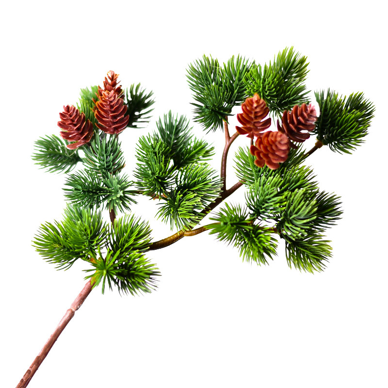 📚 仿真罗汉松针崖柏树枝松树盆栽带果迎客松枝塑料花松树叶子假树叶