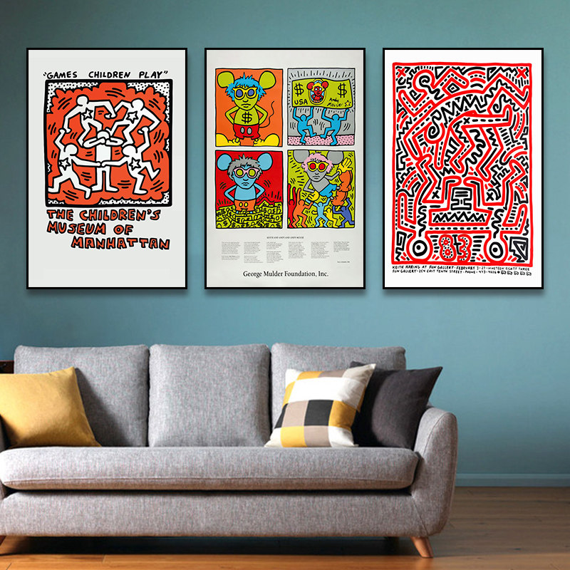📚 凯斯哈林挂画潮流客厅美术室展览馆装饰画Keith Haring涂鸦壁画