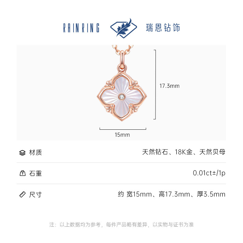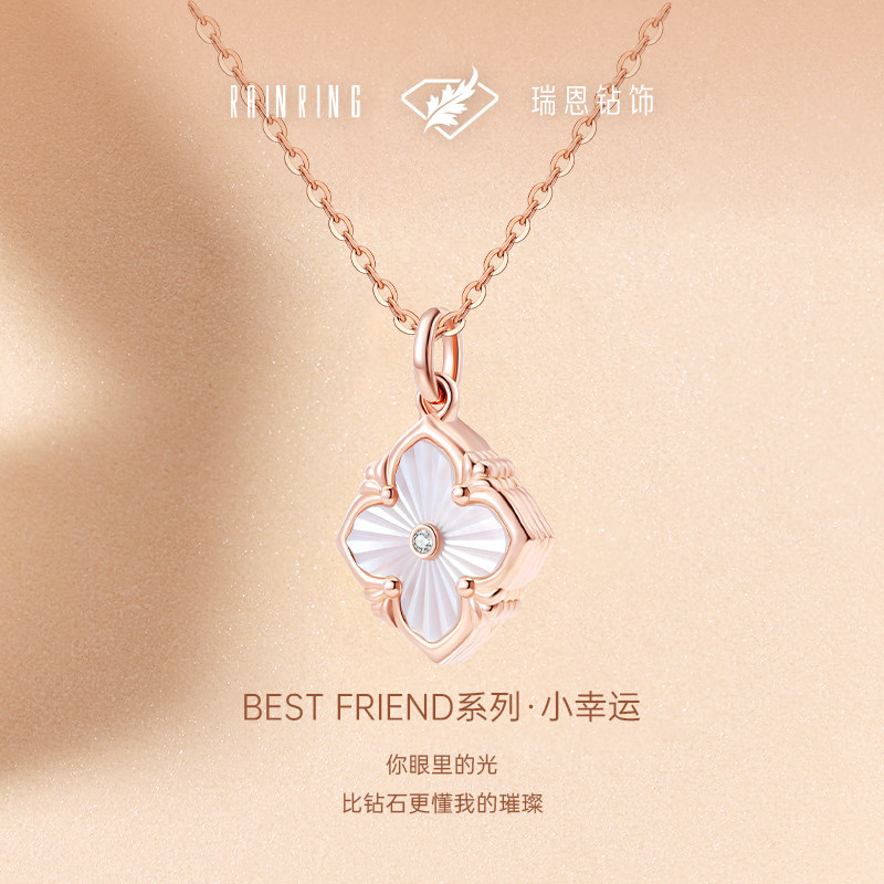 📚 瑞恩钻饰四叶草18K金天然真钻贝母吊坠钻石项链送女友生日礼正品
