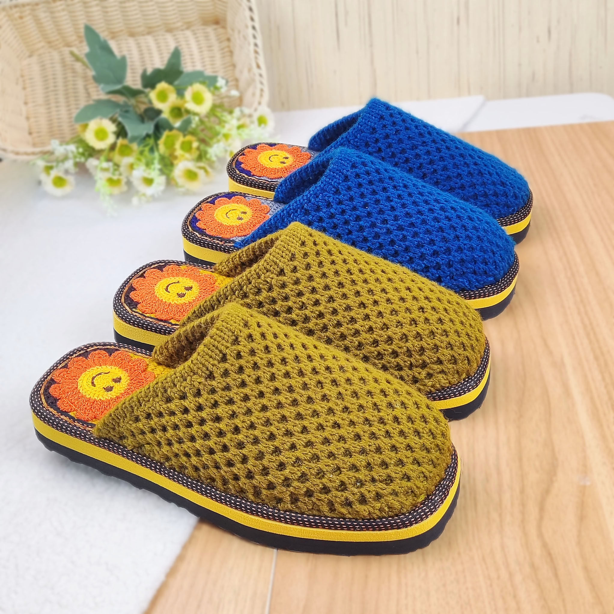 📚 2025冬季男女情侣款纯手工勾编织毛线拖鞋防滑保暖春秋居家月子鞋