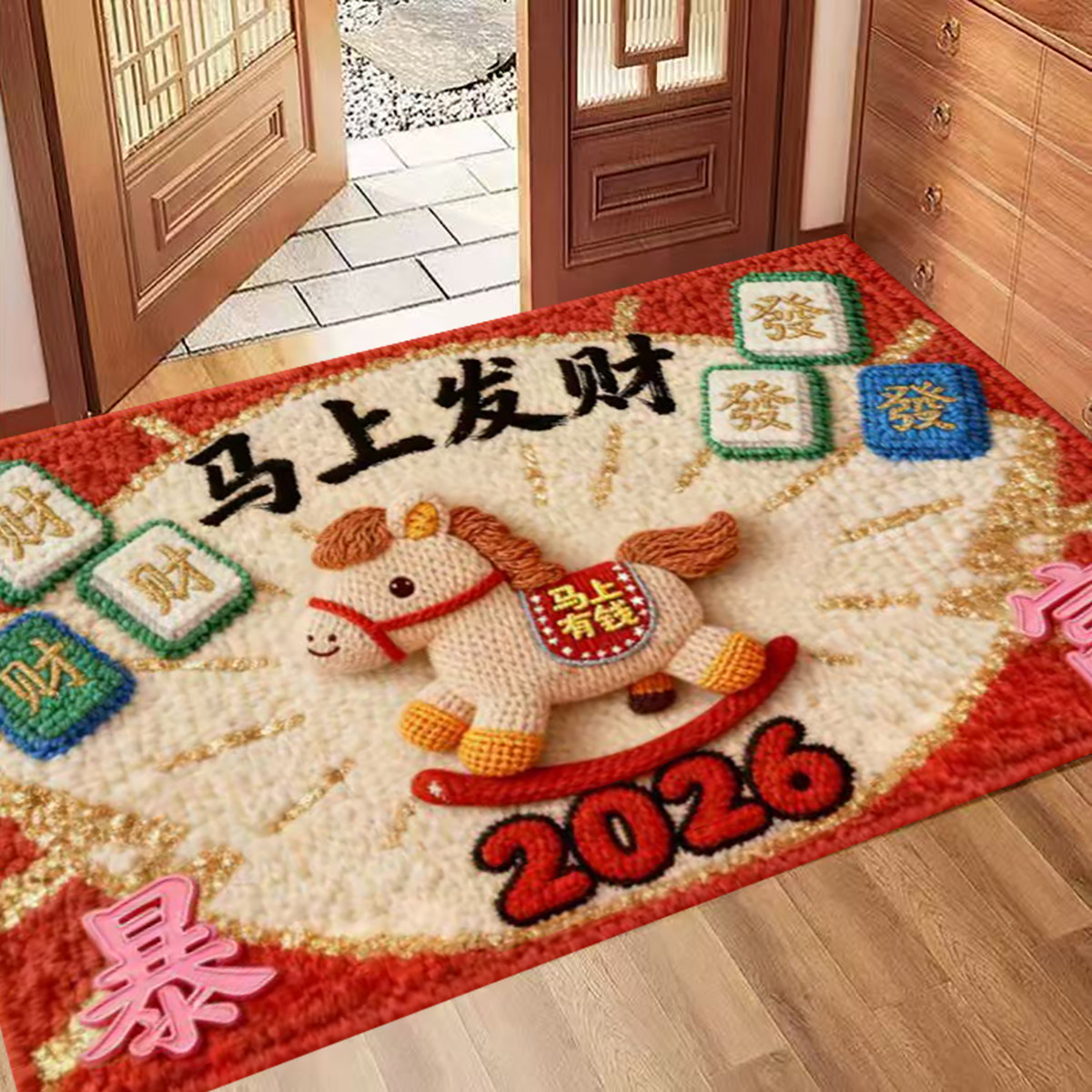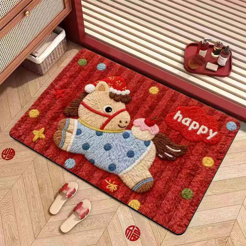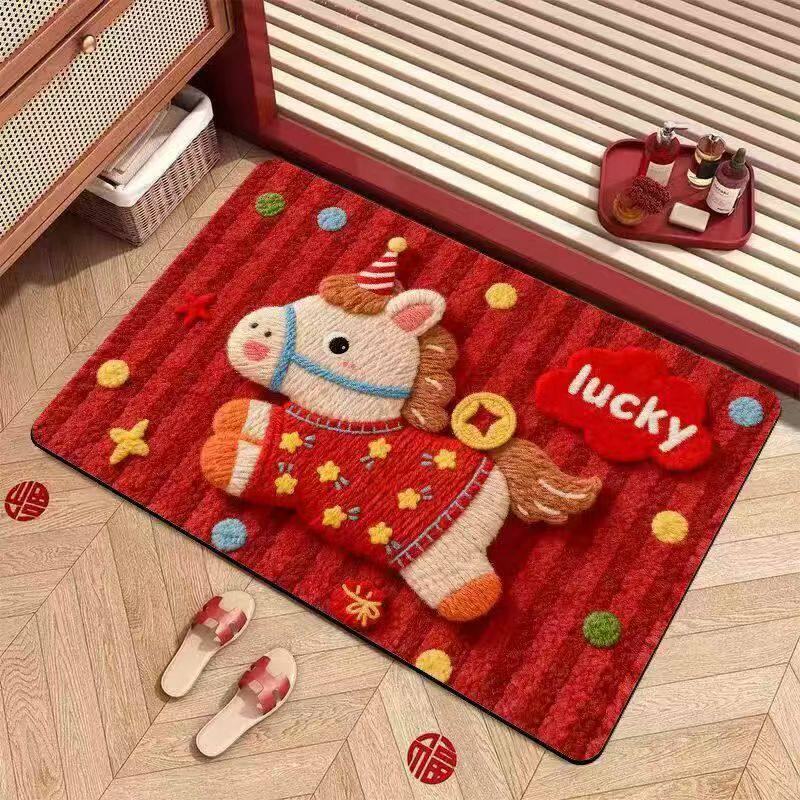 📚 卡通马年红色入户门地垫新款喜庆防滑除尘耐磨脚垫玄关大门口地毯