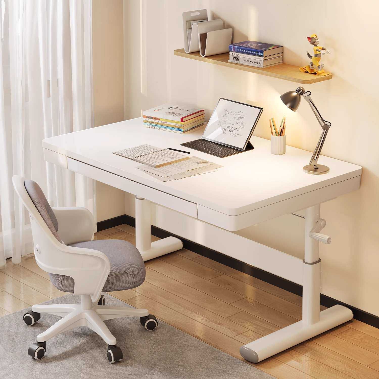 📚 儿童学习桌可升降矫正坐姿桌椅套装简约大白桌家用电脑桌学生书桌